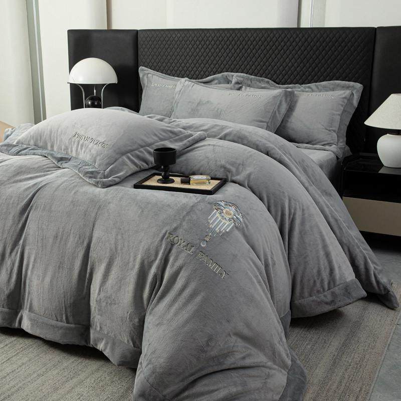 新款高端加厚全消光牛奶绒四件套高克重加绒简约床上用品冬季绒王