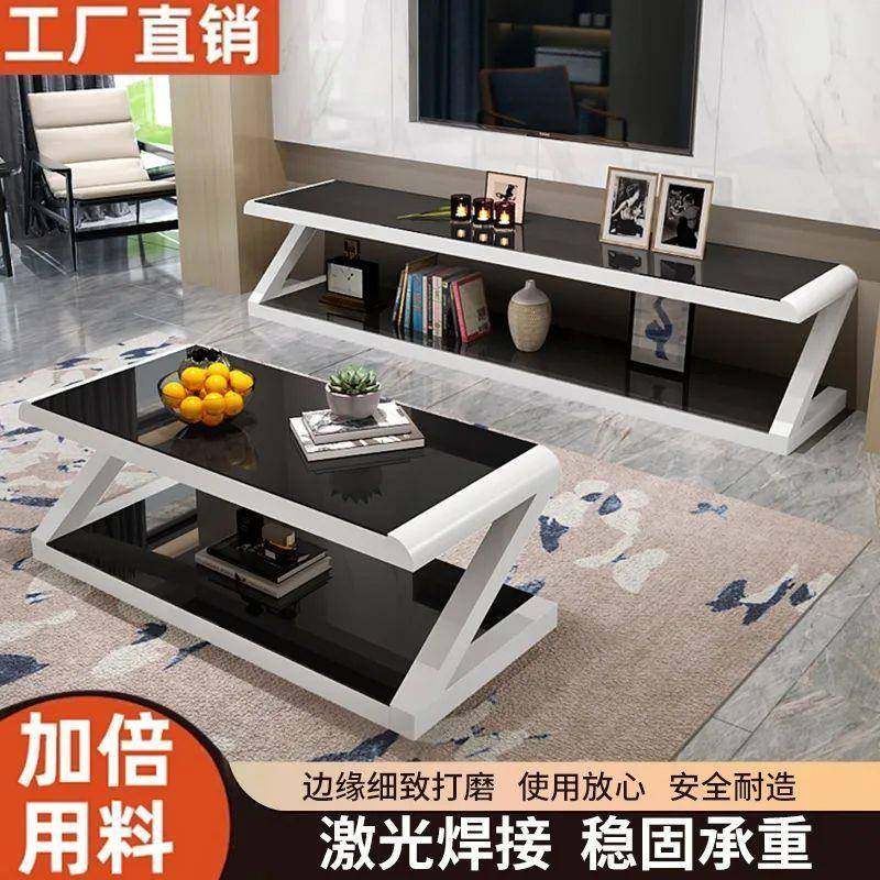 客厅电视柜钢化玻璃客厅柜简约现代茶几电视柜组合铁艺烤漆茶几