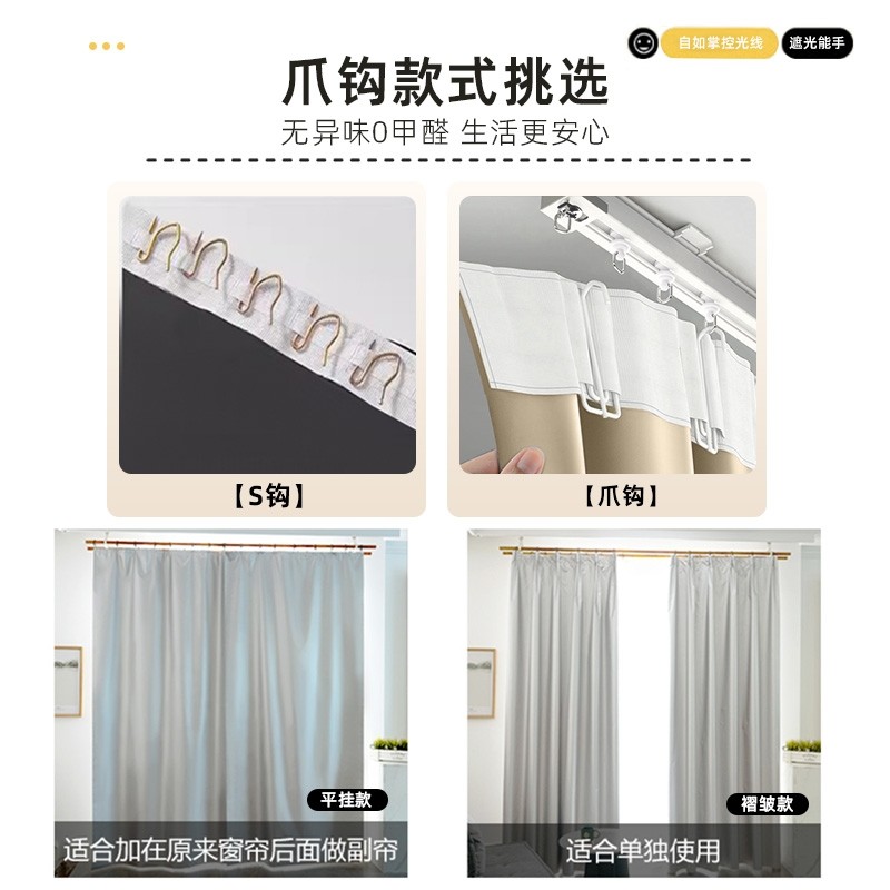全遮光窗帘2024隔热遮阳防晒新款衬布卧室阳台简易免打孔神器租房