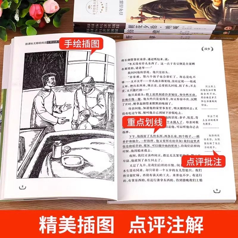 全套4册故乡鲁迅原著正版必读小学六年级上册阅读课外书的书籍推荐朝花夕拾呐喊野草全集经典小说小学生散文读本书本名著文学理论