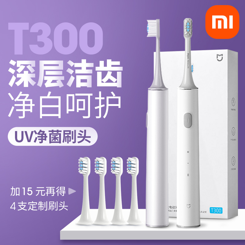 米家电动牙刷T300米家全自动声波儿童成人防水男女情侣充电送刷头