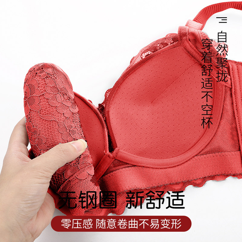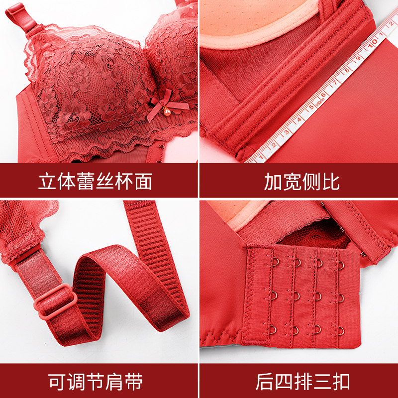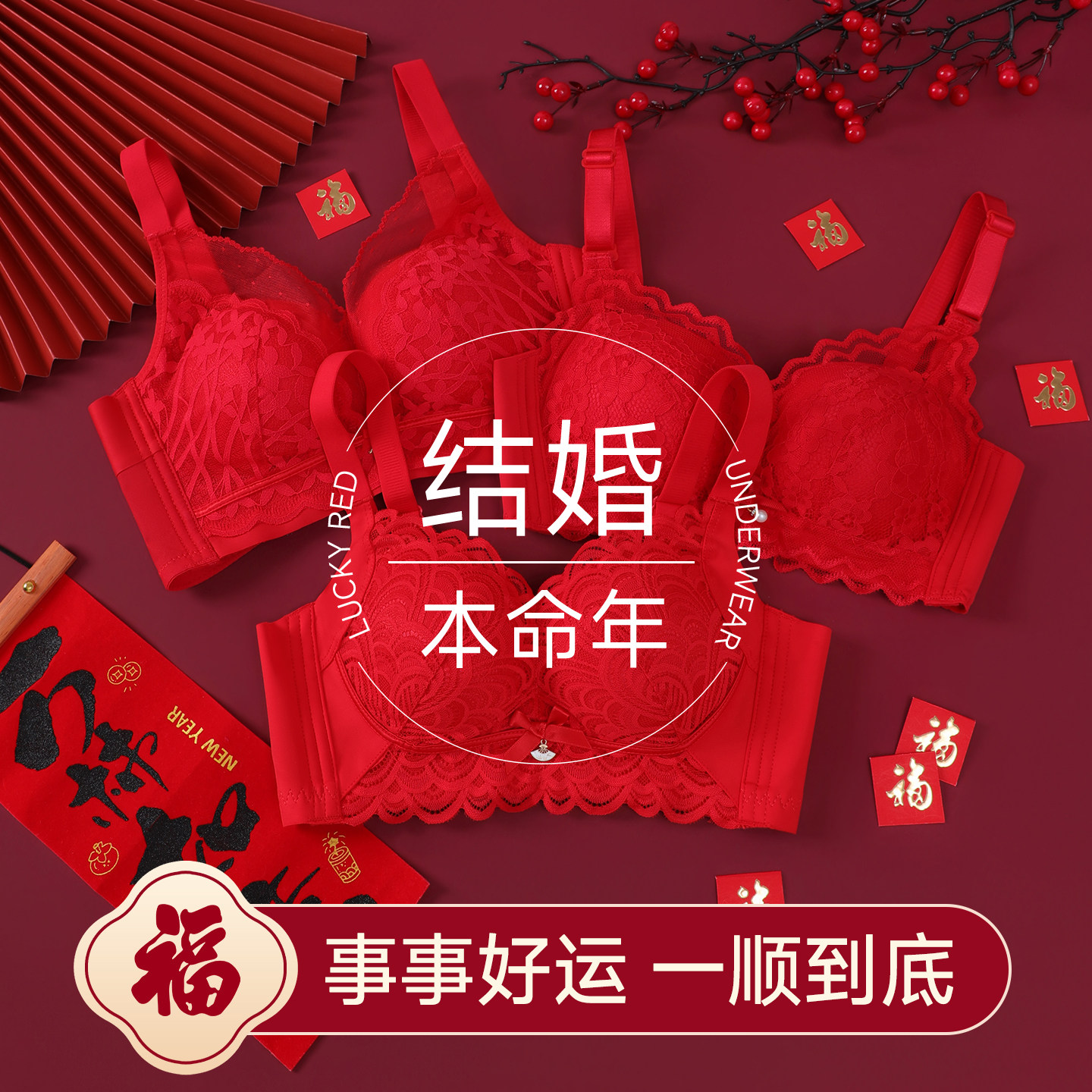 茵可可文胸女本命年大红色结婚喜庆礼盒套装聚拢收副乳防下垂内衣