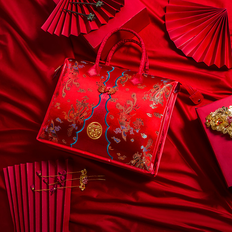 婚庆四件套红色喜被装棉被的包装袋子缎面喜庆手提结婚陪嫁收纳袋