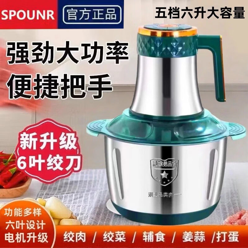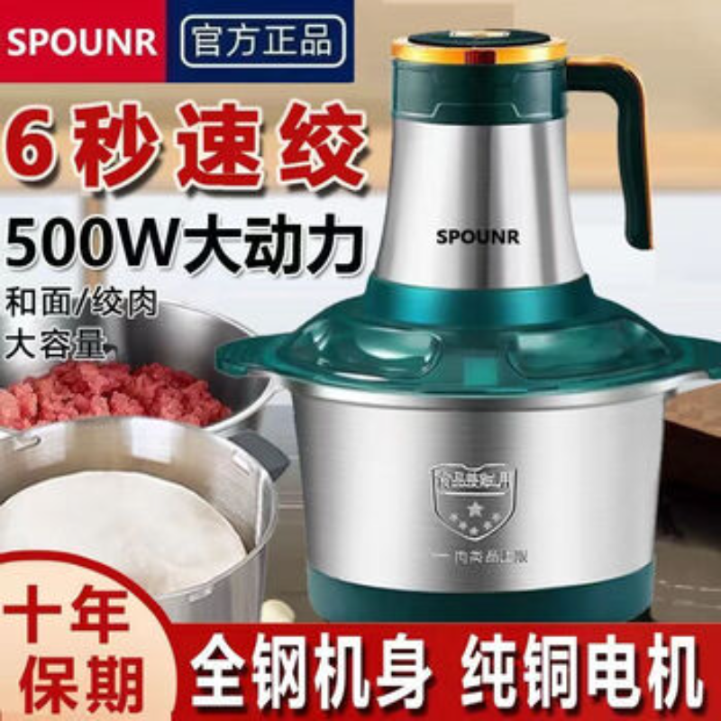 苏泊SPOUNR绞肉机家用5升不锈钢搅拌多功能大容量搅菜蒜碎肉料理