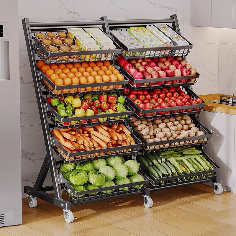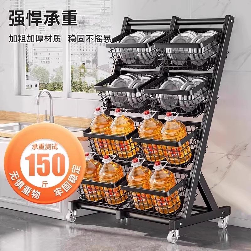 厨房置物架用小推车多层水果蔬菜篮子收纳筐落地客厅零食货架斜放