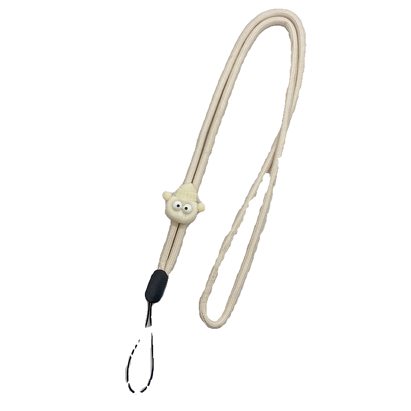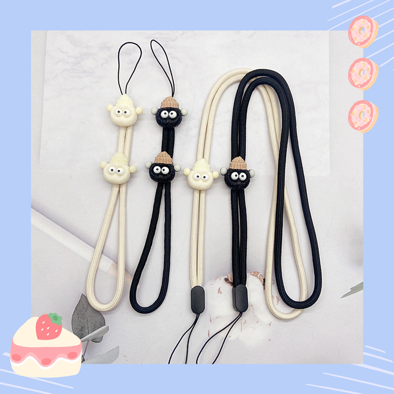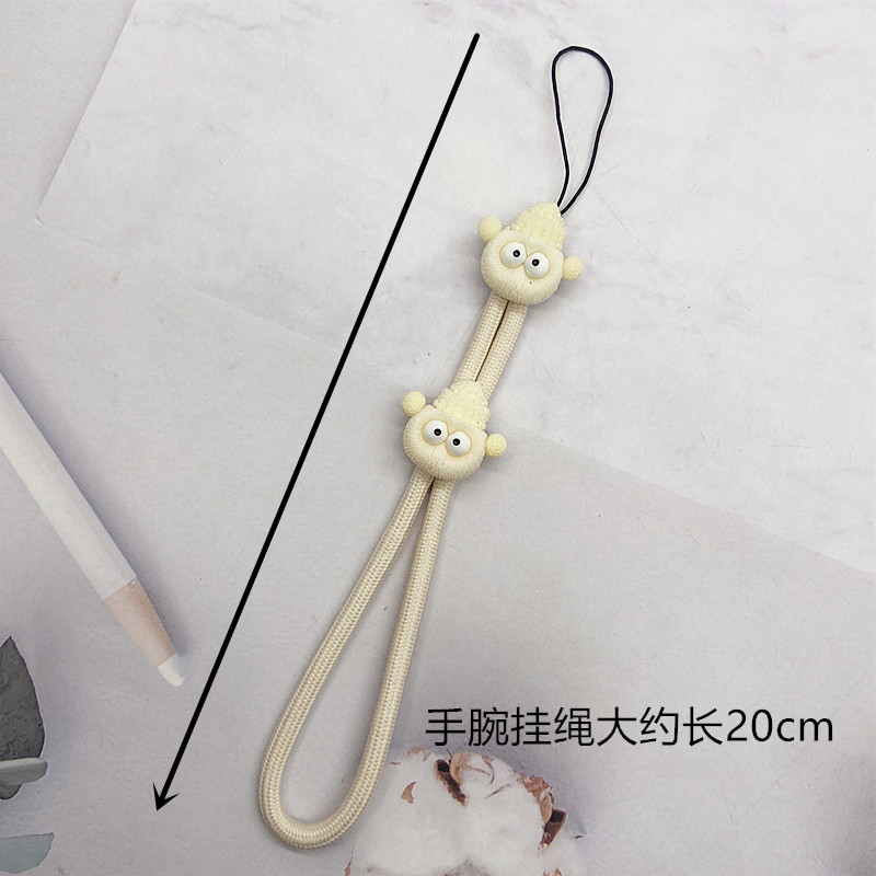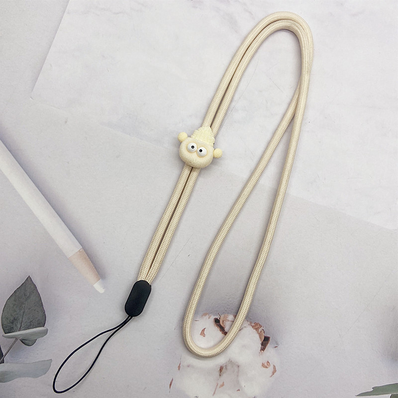 米白色卡通煤球手机挂绳挂脖绳长款尼龙手机链挂件手腕绳子防摔丢