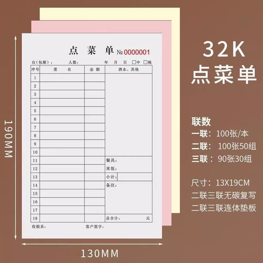 32K大号加厚点菜单本饭店烧烤酒店一二三联菜单点菜单通用餐饮买菜记账本明细账记帐本火锅店