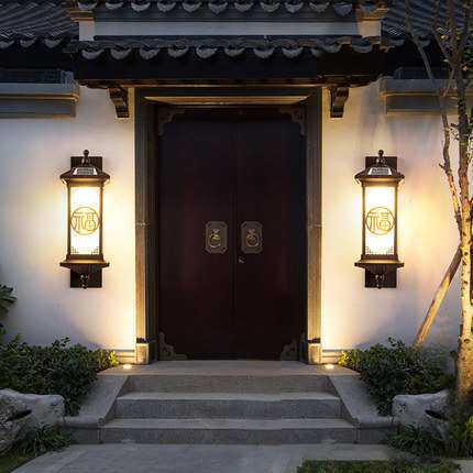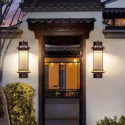 太阳能户外壁灯 防水别墅露台阳台门口新中式过道室外庭院灯