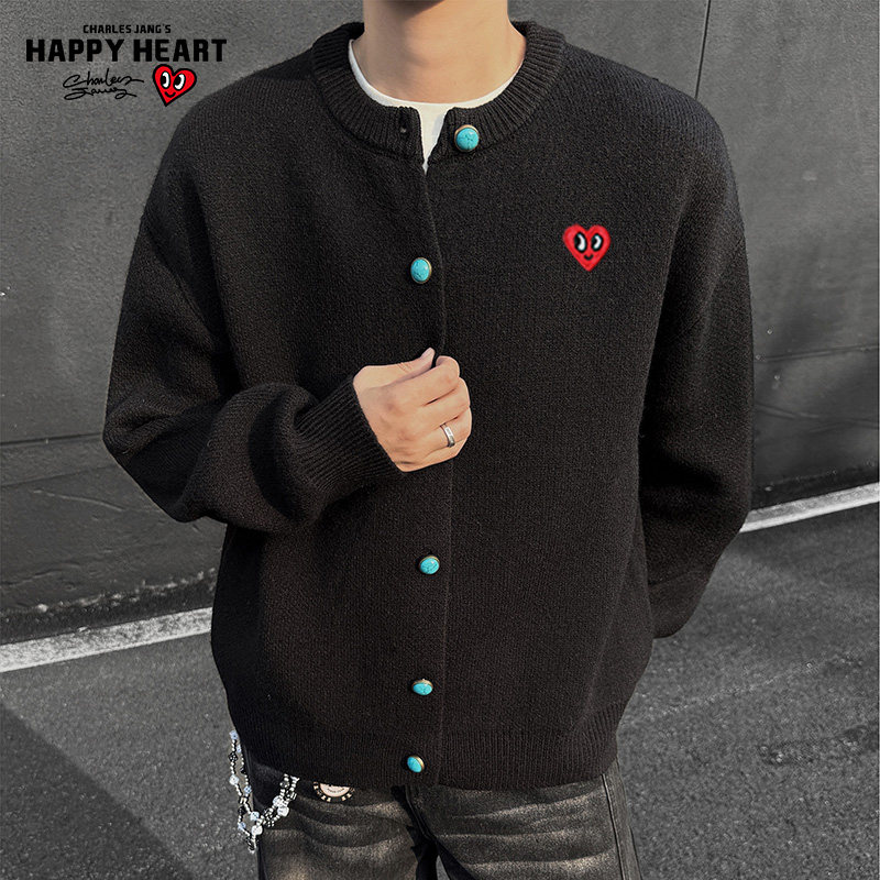 查尔斯桃心毛衣男春秋季新款潮牌休闲宽松百搭情侣开衫针织衫外套