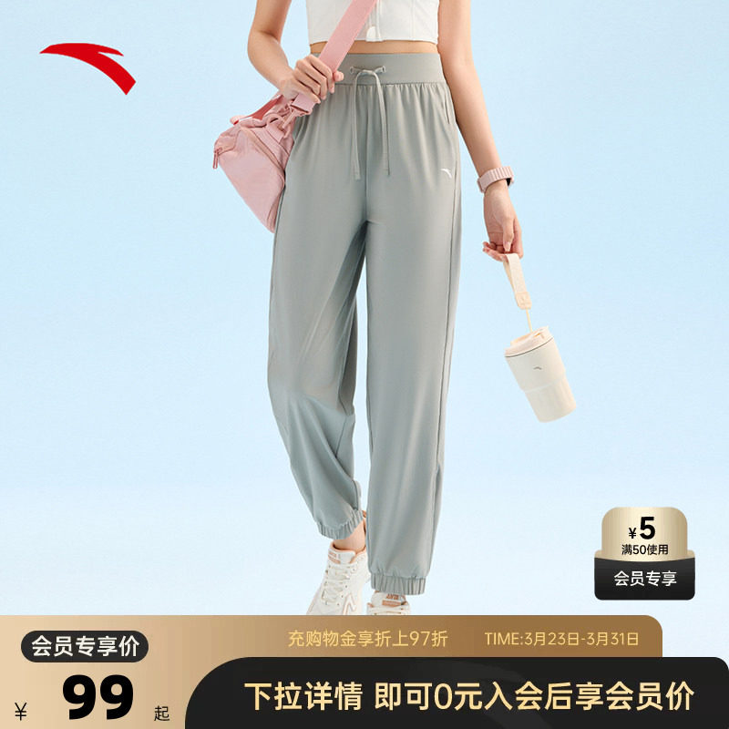 安踏冰丝裤丨高腰训练运动长裤女春夏季透气跑步束脚裤162527335