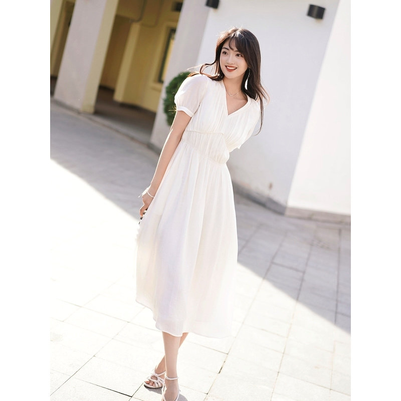 YINER音儿专选秋季仙女裙佩普洛斯法式收褶连衣裙
