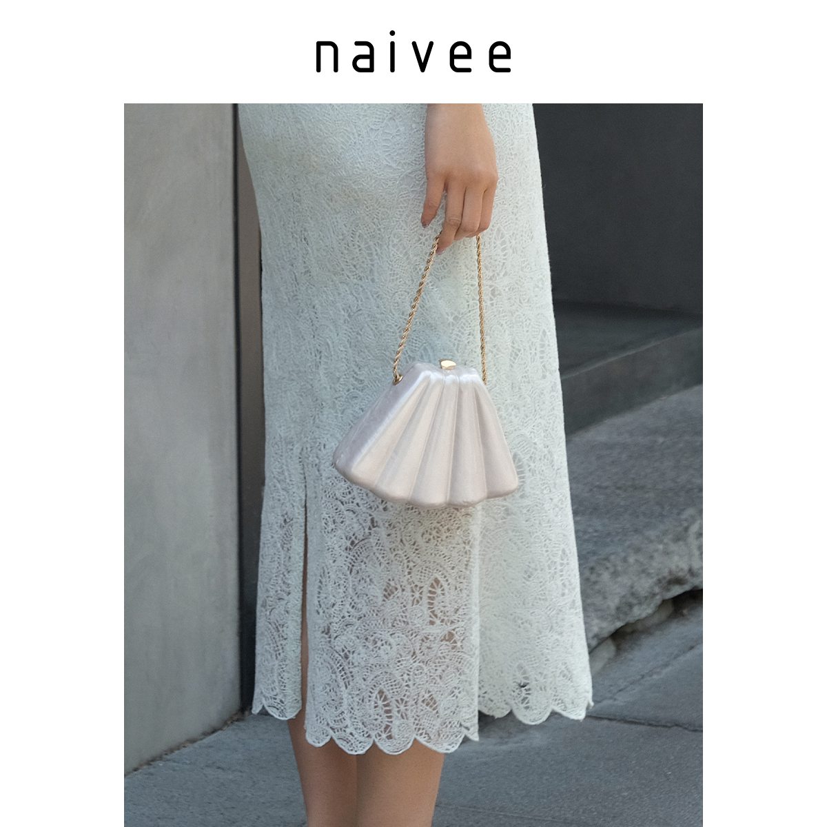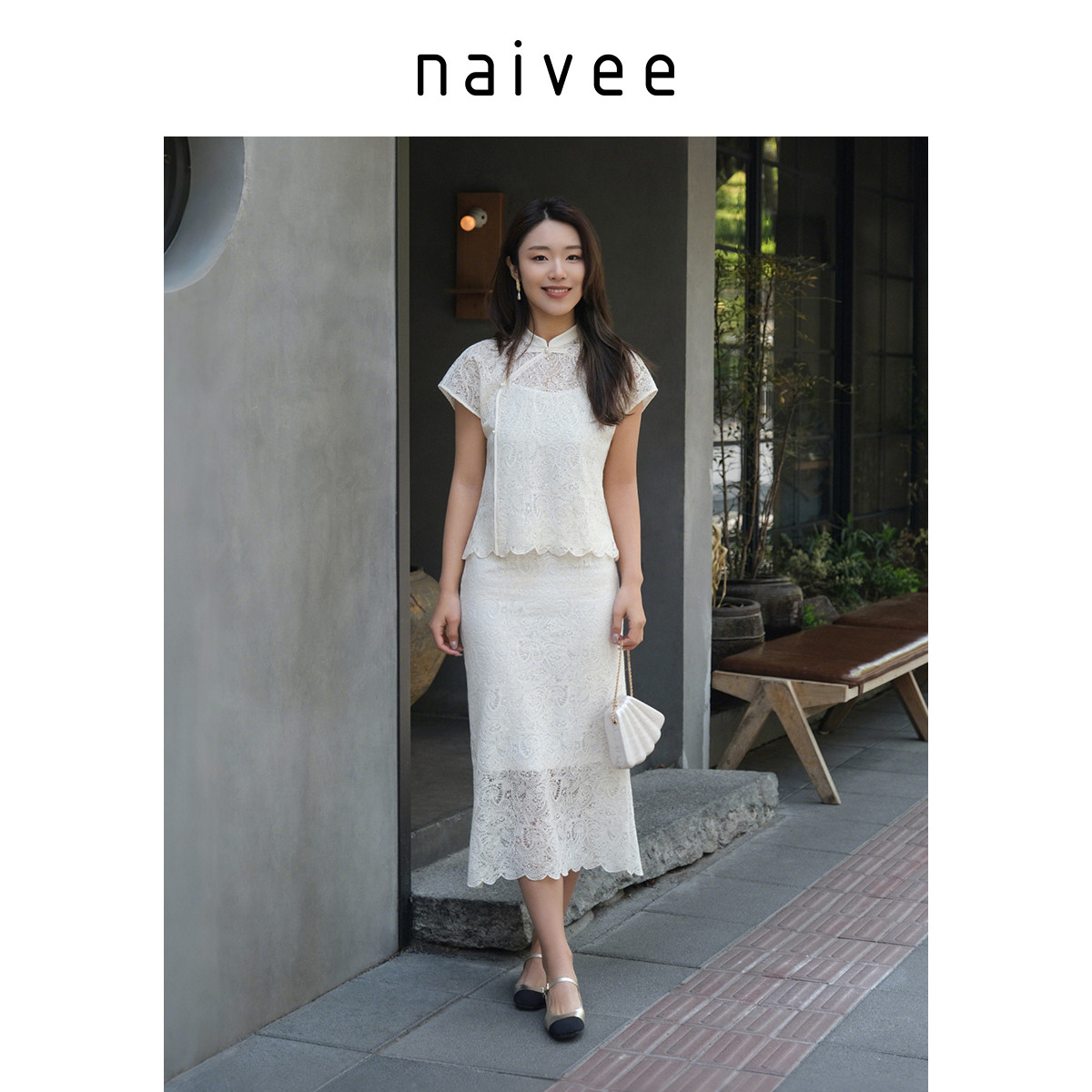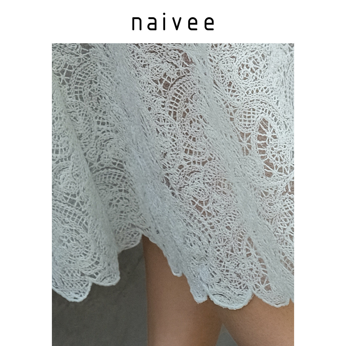 【重工蕾丝网纱半裙】naivee纳薇直筒裙长款25夏新款绣花仙女时尚