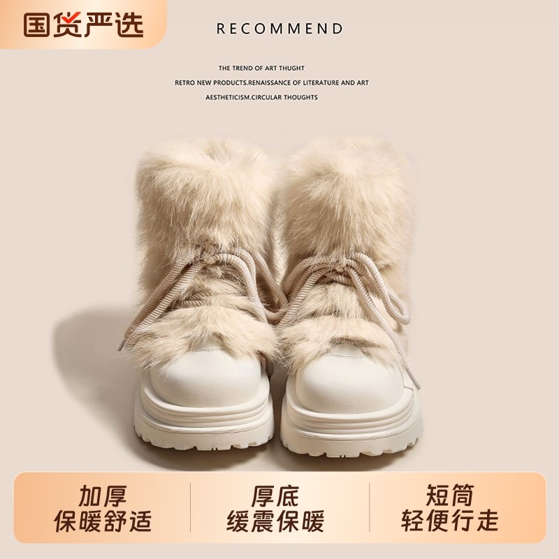毛毛靴防滑雪地靴女秋冬加厚保暖中筒棉鞋厚底增高大头短靴子防水