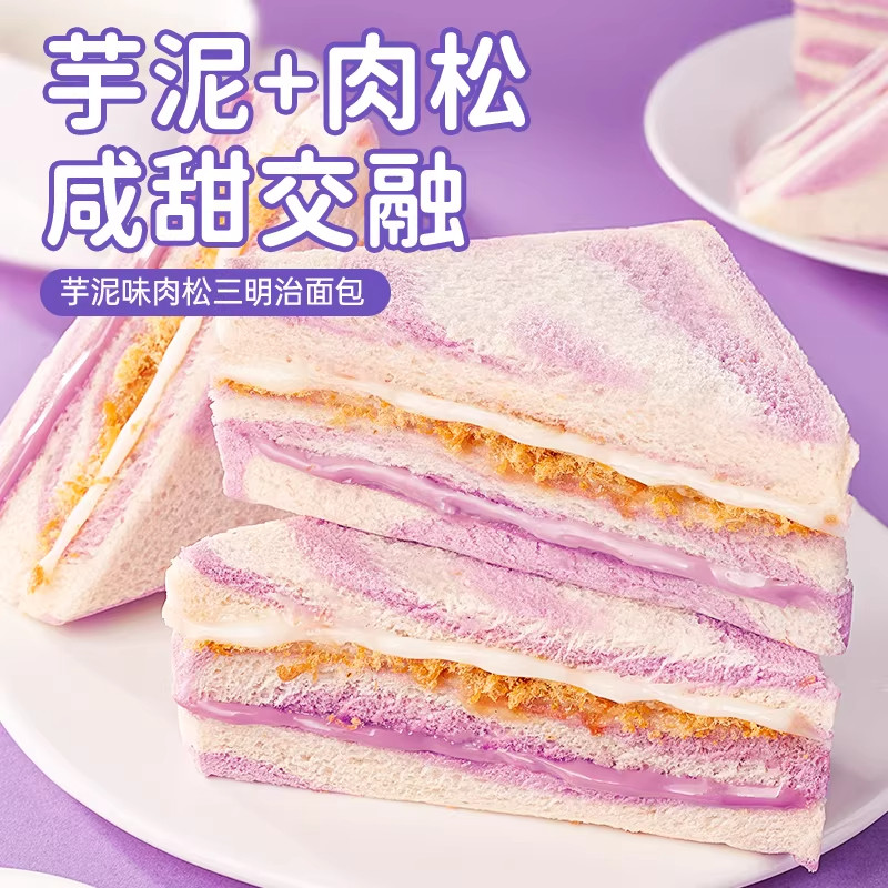 芋泥肉松三明治吐司面包整箱早餐彩虹切片吐司小零食小吃休闲食品