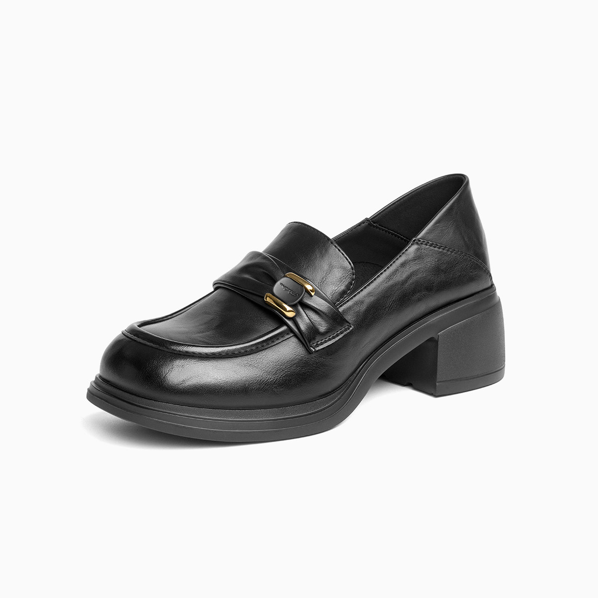 日泰头层牛皮女单鞋秋季厚底小皮鞋百搭通勤鞋妈妈软底真皮乐福鞋