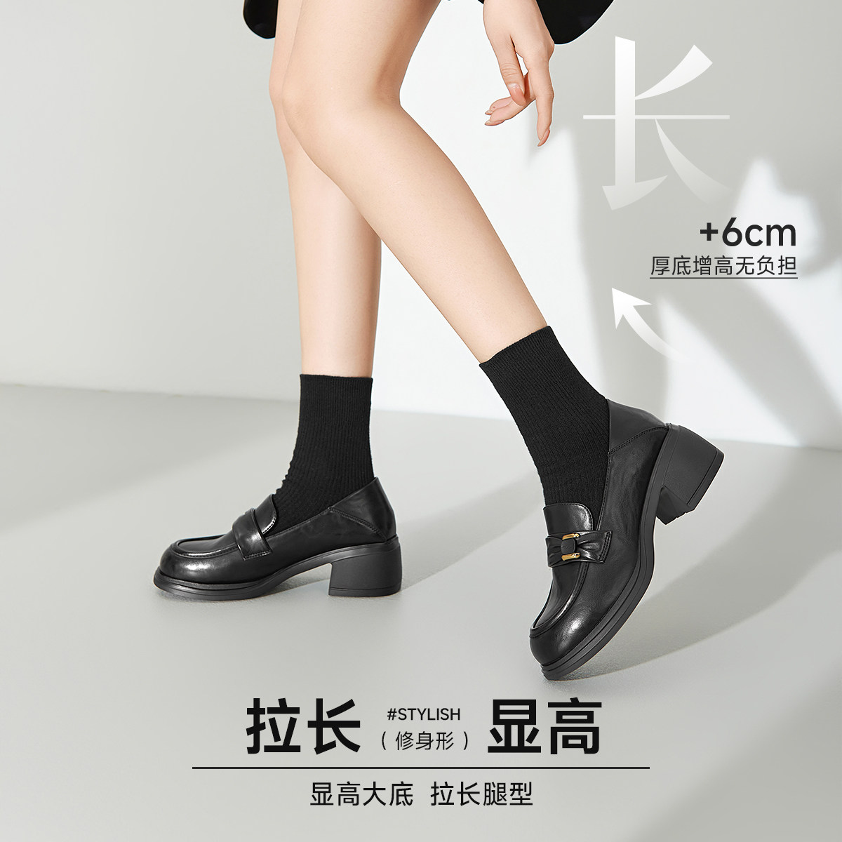 欧货真皮厚底小皮鞋女英伦风圆头加绒德比鞋小个子增高乐福鞋单鞋