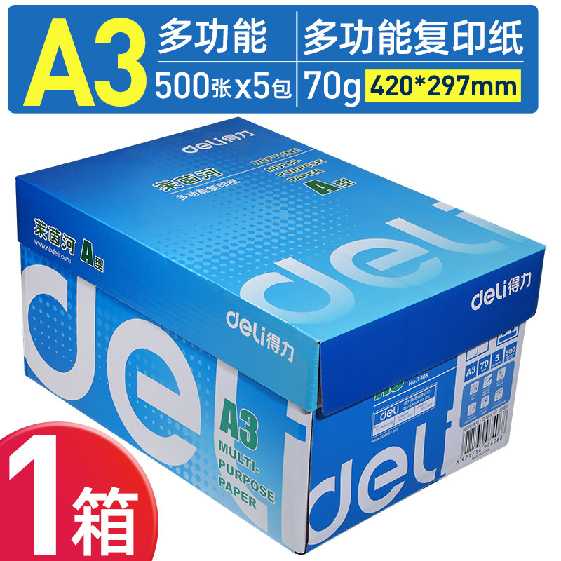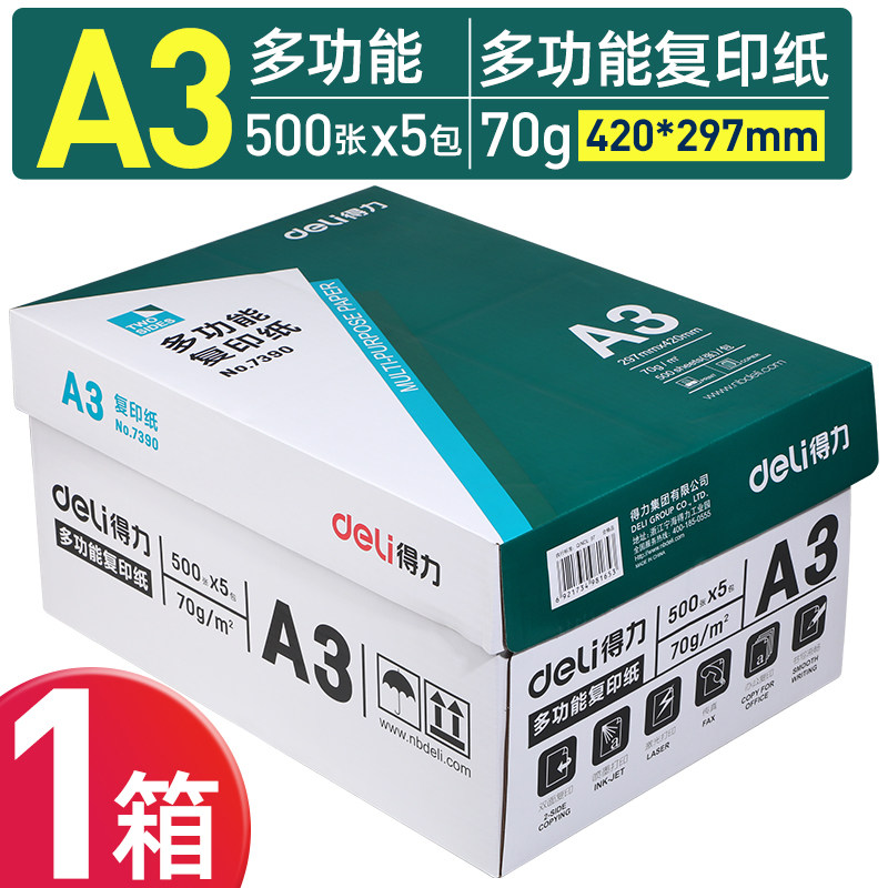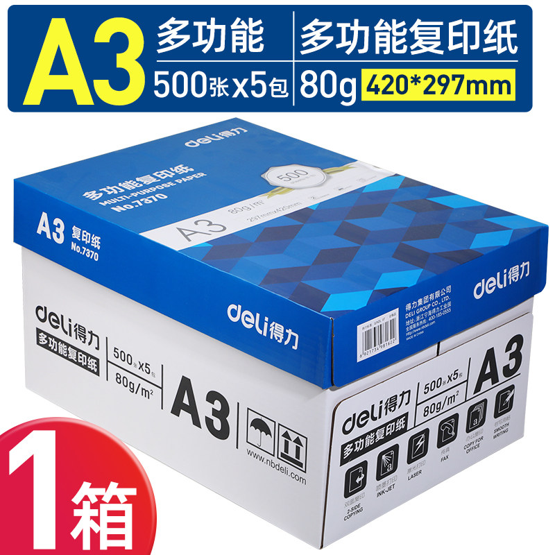 得力A3纸复印纸70g整箱办公用纸白纸整箱4包装2000张草稿纸学生用a3打印纸双面打印用纸办公用品批发多功能