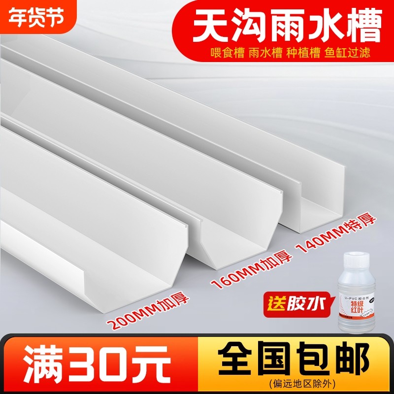 pvc天沟雨水槽140 160 200方形屋檐雨水槽排水管件雨棚槽种植鱼缸