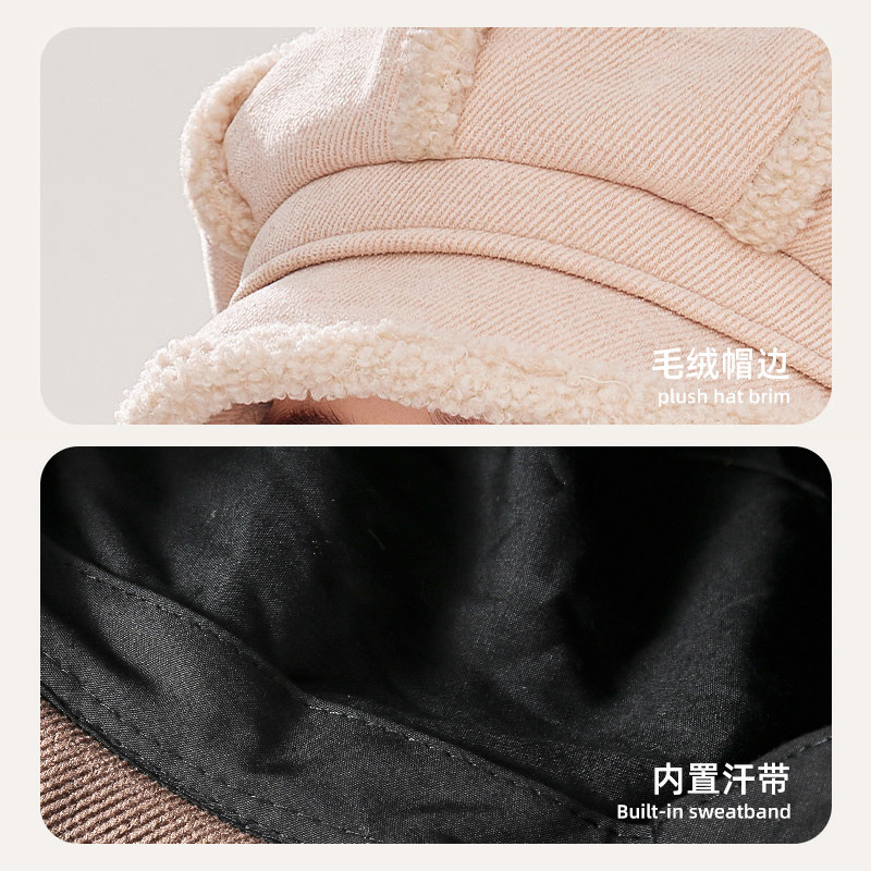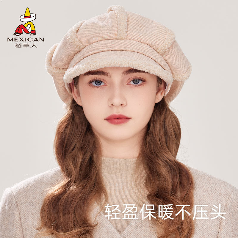 稻草人白色八角贝雷帽子女大头围显脸小冬天高级感复古报童画家帽