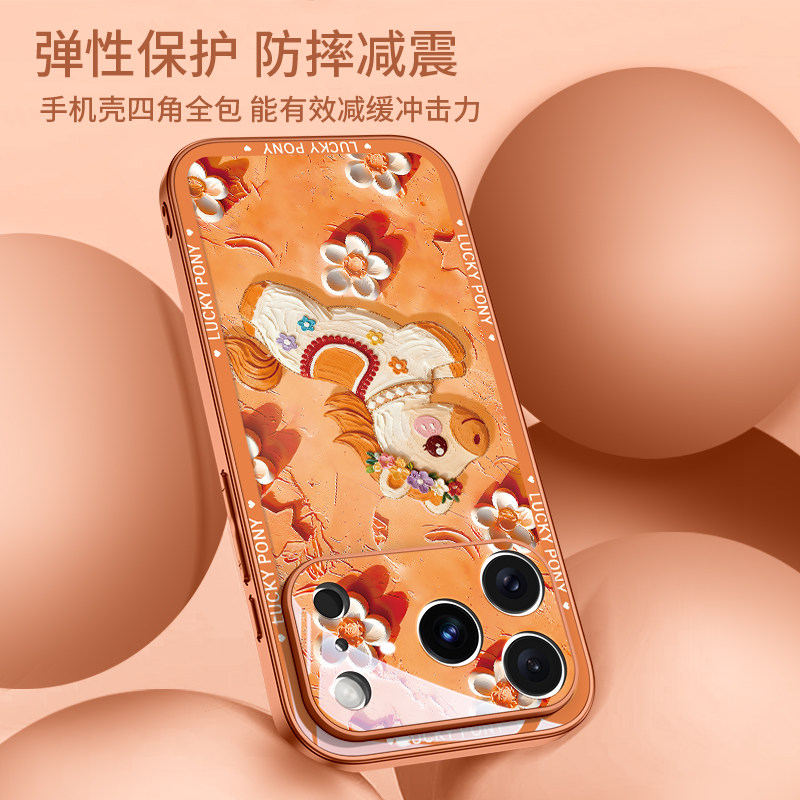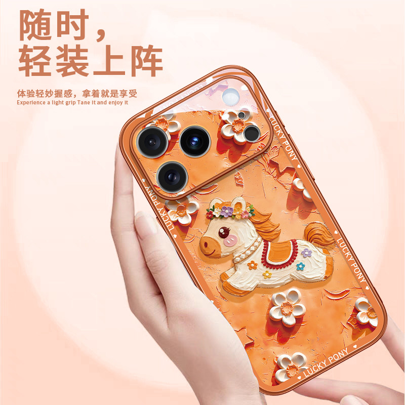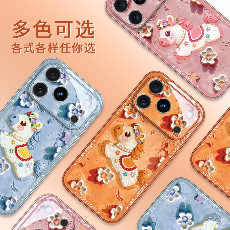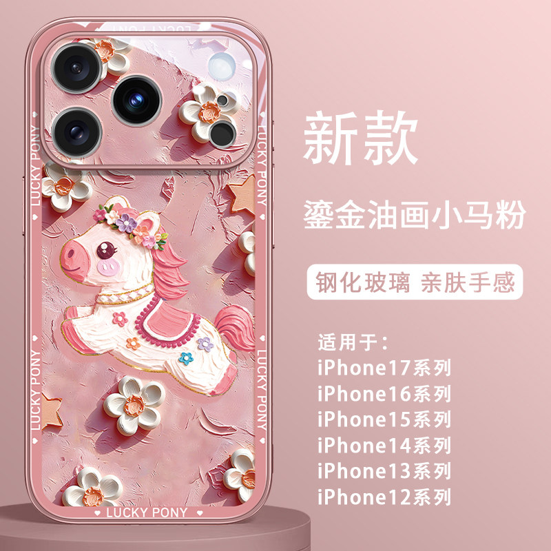 鎏金油画小马适用苹果手机壳iphone17promax新款17pro高级感16promax15plus马年14pro时尚保护套女款创意air
