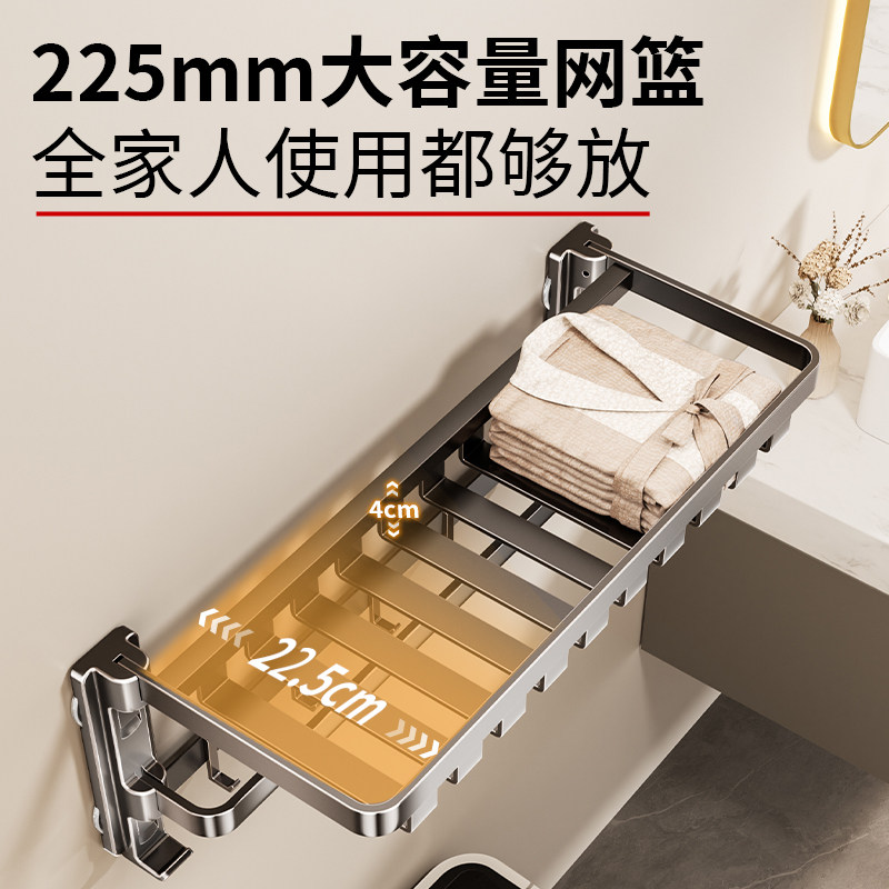 吸盘毛巾架卫生间置物架浴室免打孔网篮浴巾架厕所卫浴套装伸缩
