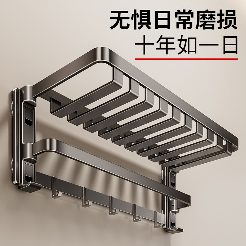 卫生间毛巾架置物架一体浴室免打孔厕所枪灰浴巾架太空铝卫浴双杆