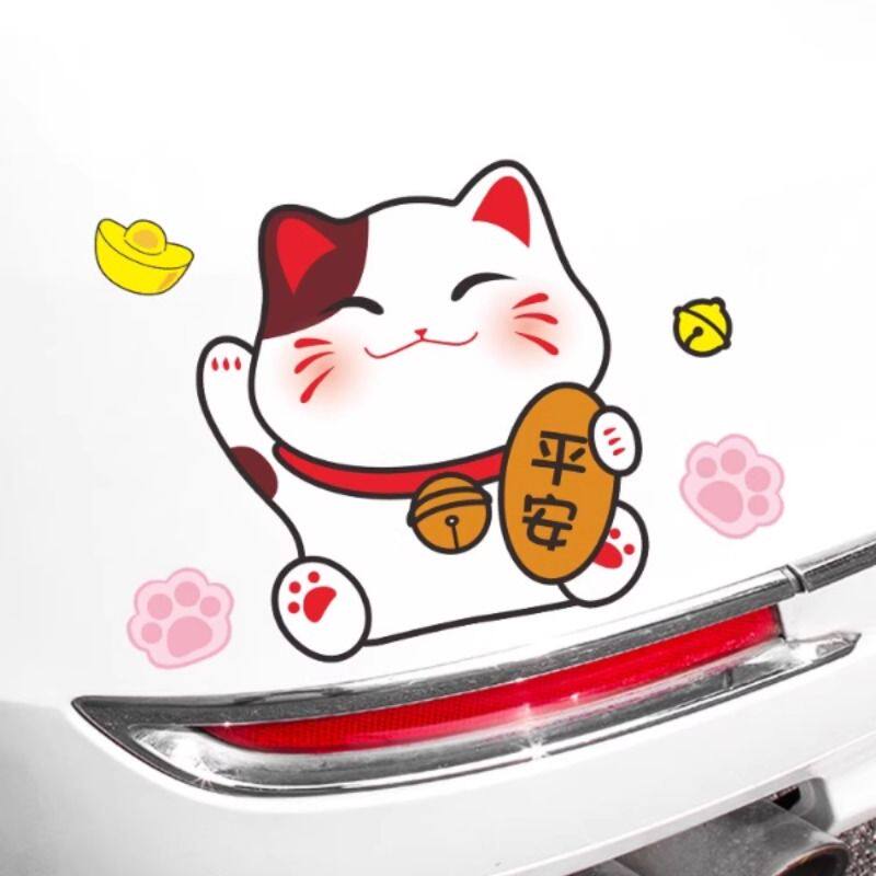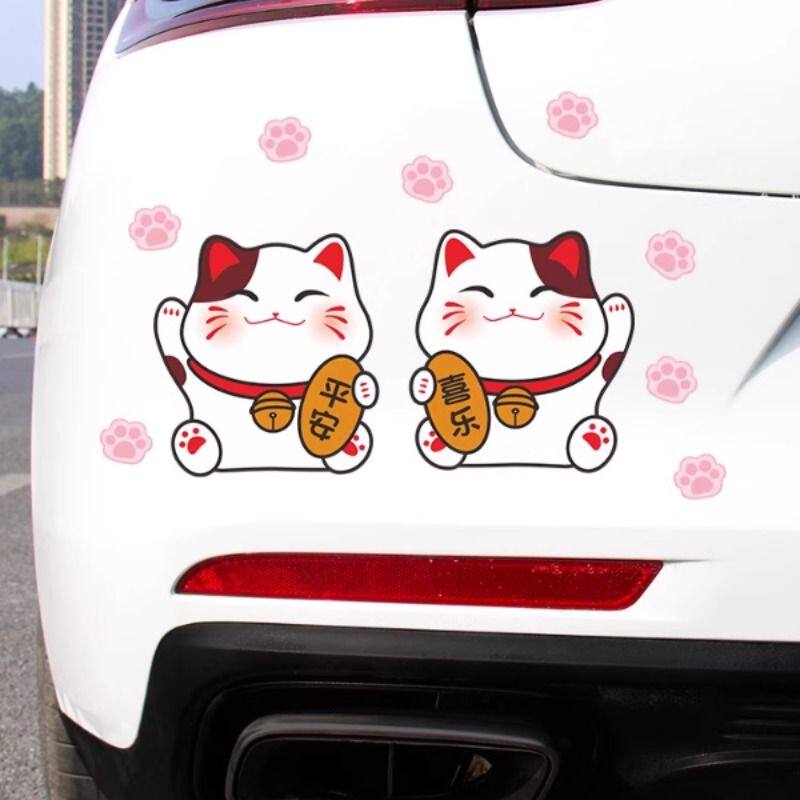 招财猫车贴纸划痕遮挡玻璃个性创意装饰摩托电动车尾防水卡通可爱