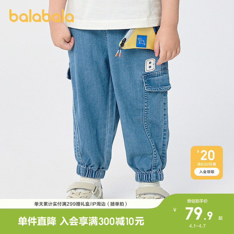 巴拉巴拉童装儿童长裤工装牛仔裤男童裤子夏季宽松束脚裤时尚百搭