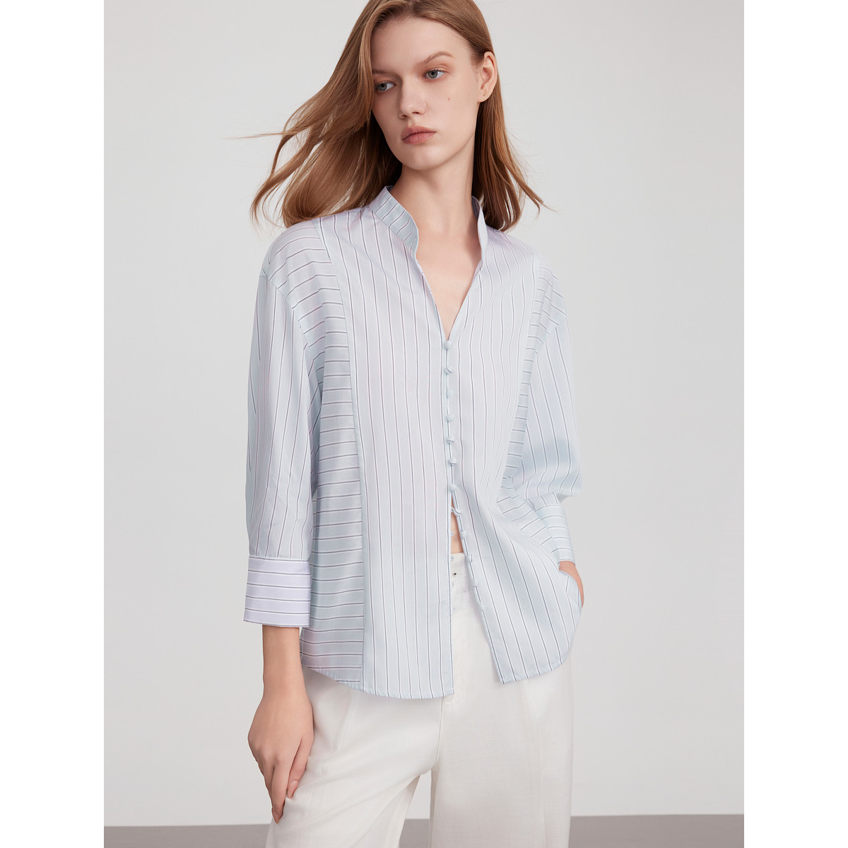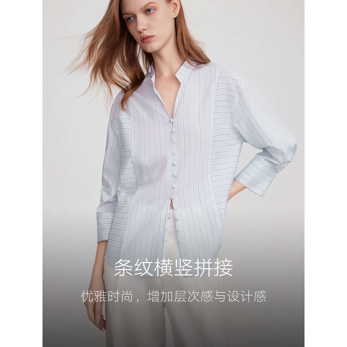 ELLE条纹拼接通勤衬衫女2025夏季新款宽松休闲风时髦优雅衬衣上衣