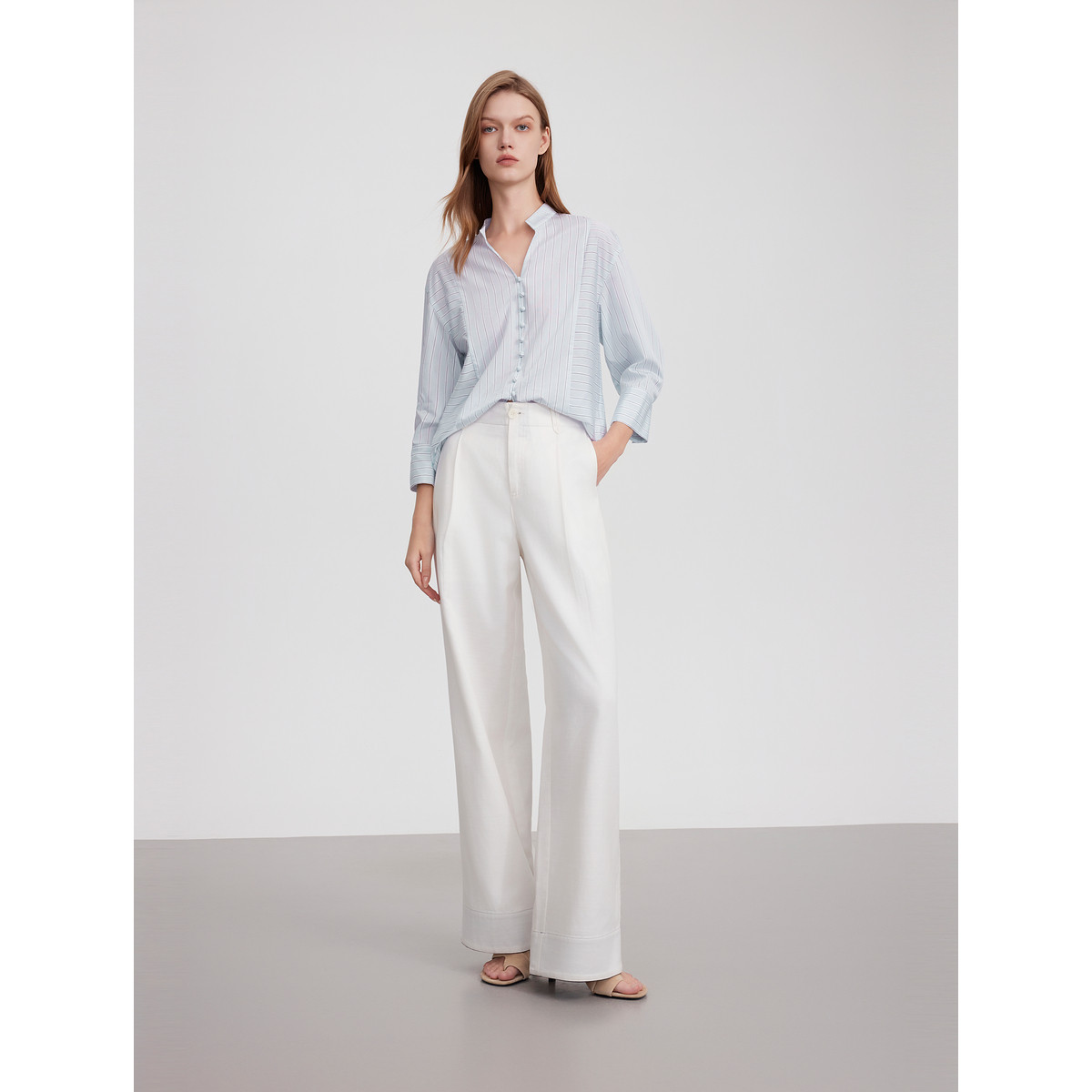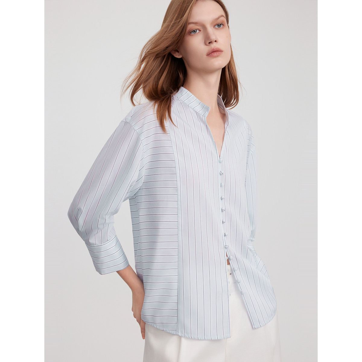 COCOBELLA设计感小立领黑白条纹衬衫外套女仿棉麻休闲衬衣SR0019