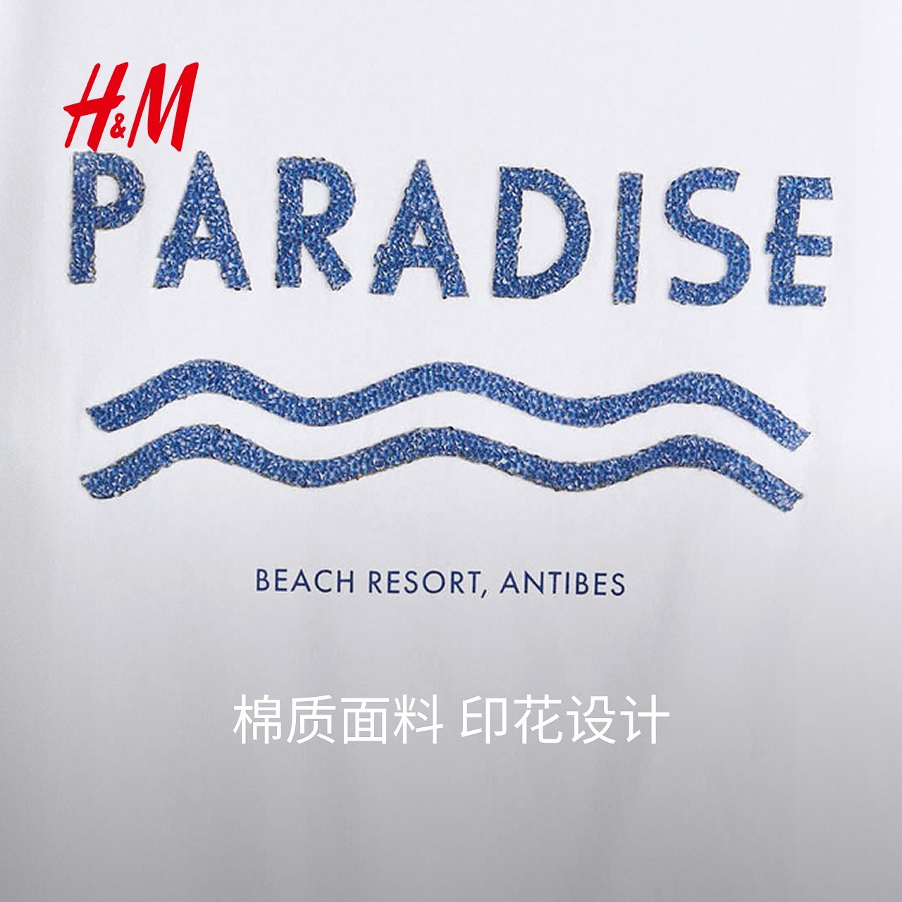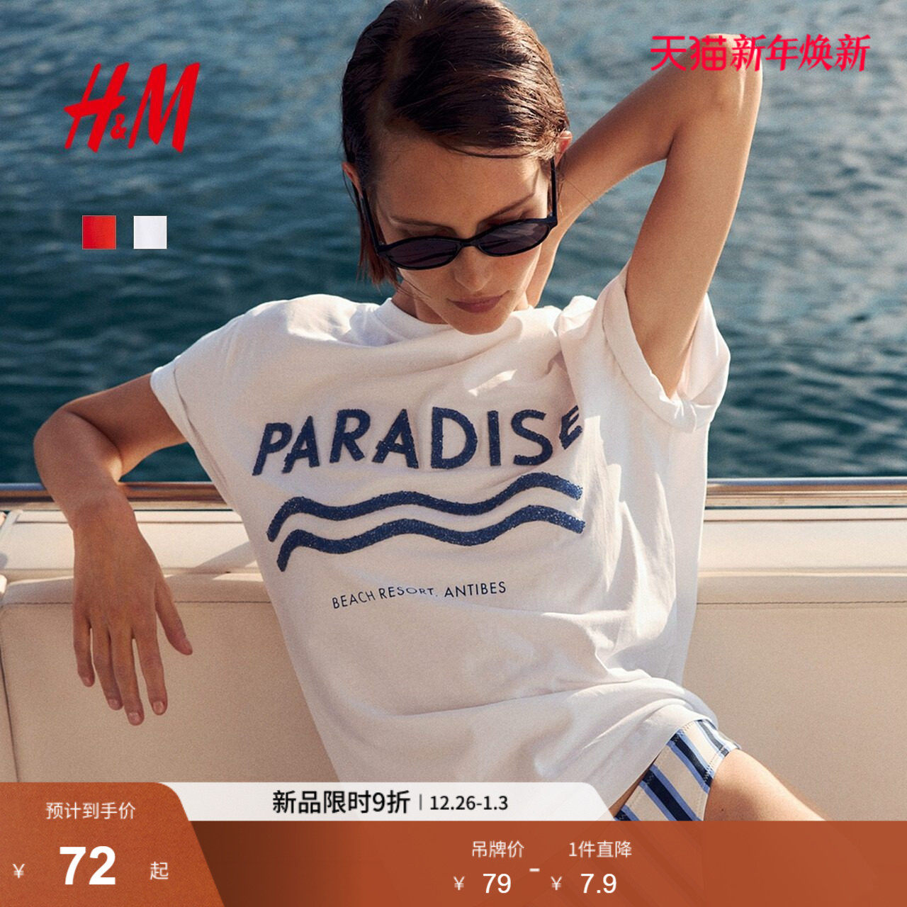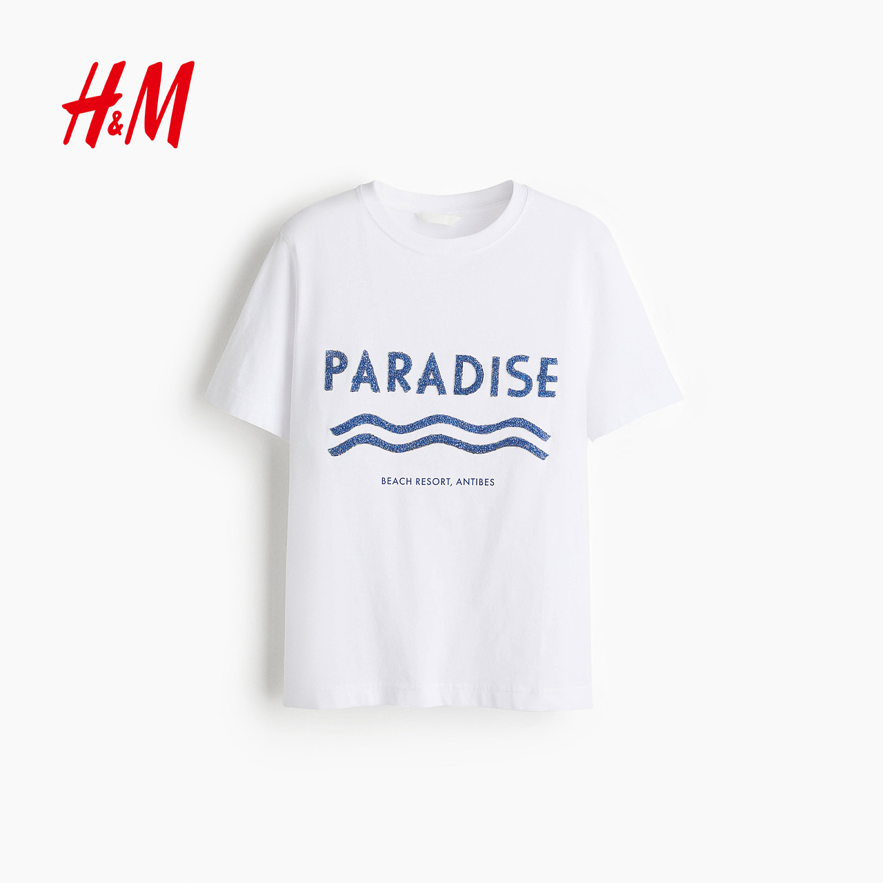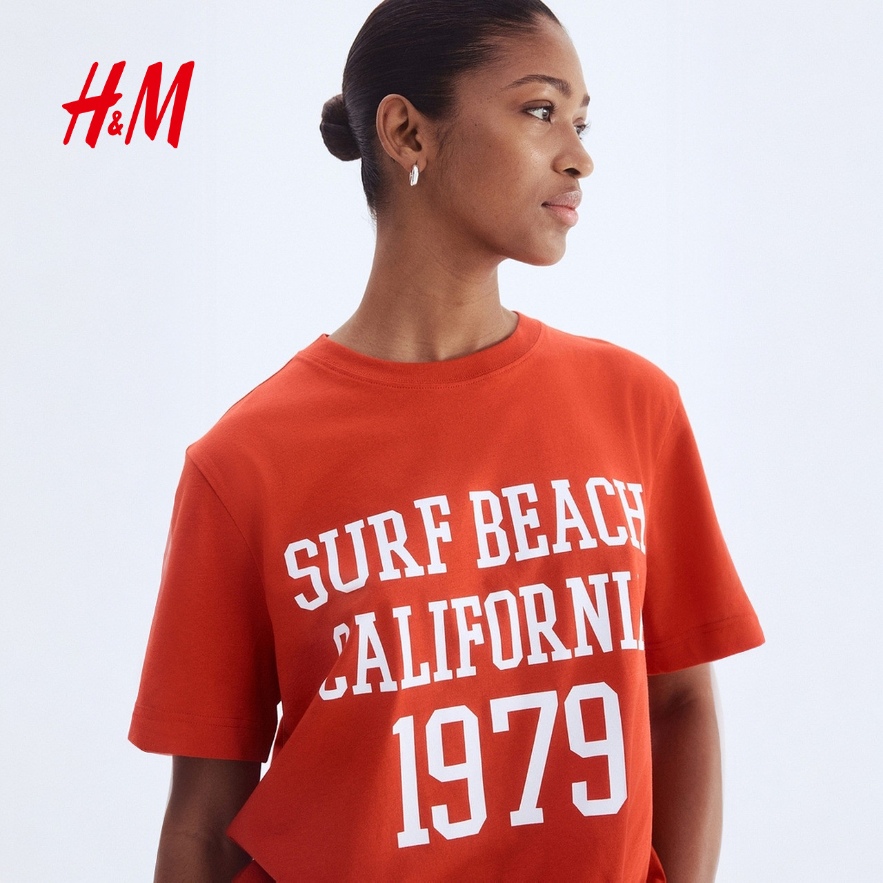 HM女装T恤2025冬季新款宽松字母印花美式圆领休闲短袖上衣1274171