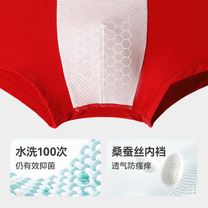 久岁伴儿童内裤男童平角短裤蚕丝内档青少年透气运动红色3条装