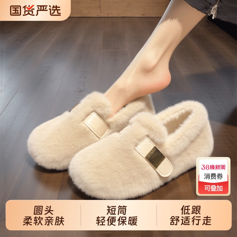 低帮厚底雪地靴女2025新款冬季懒人一脚蹬毛毛棉鞋加绒加厚女鞋子