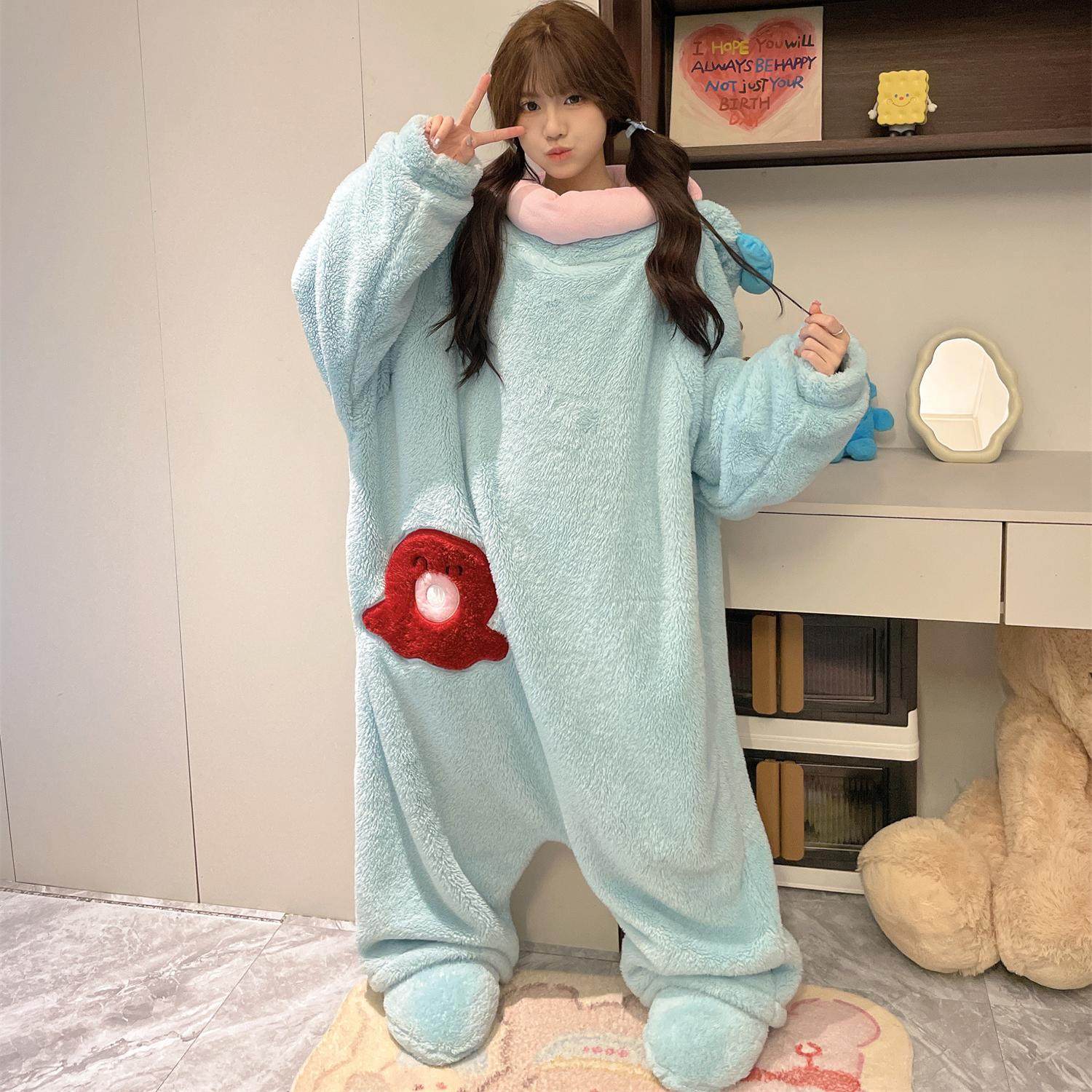 丑鱼儿童可爱搞怪连体睡衣男女童秋冬季加厚珊瑚绒卡通亲子家居服