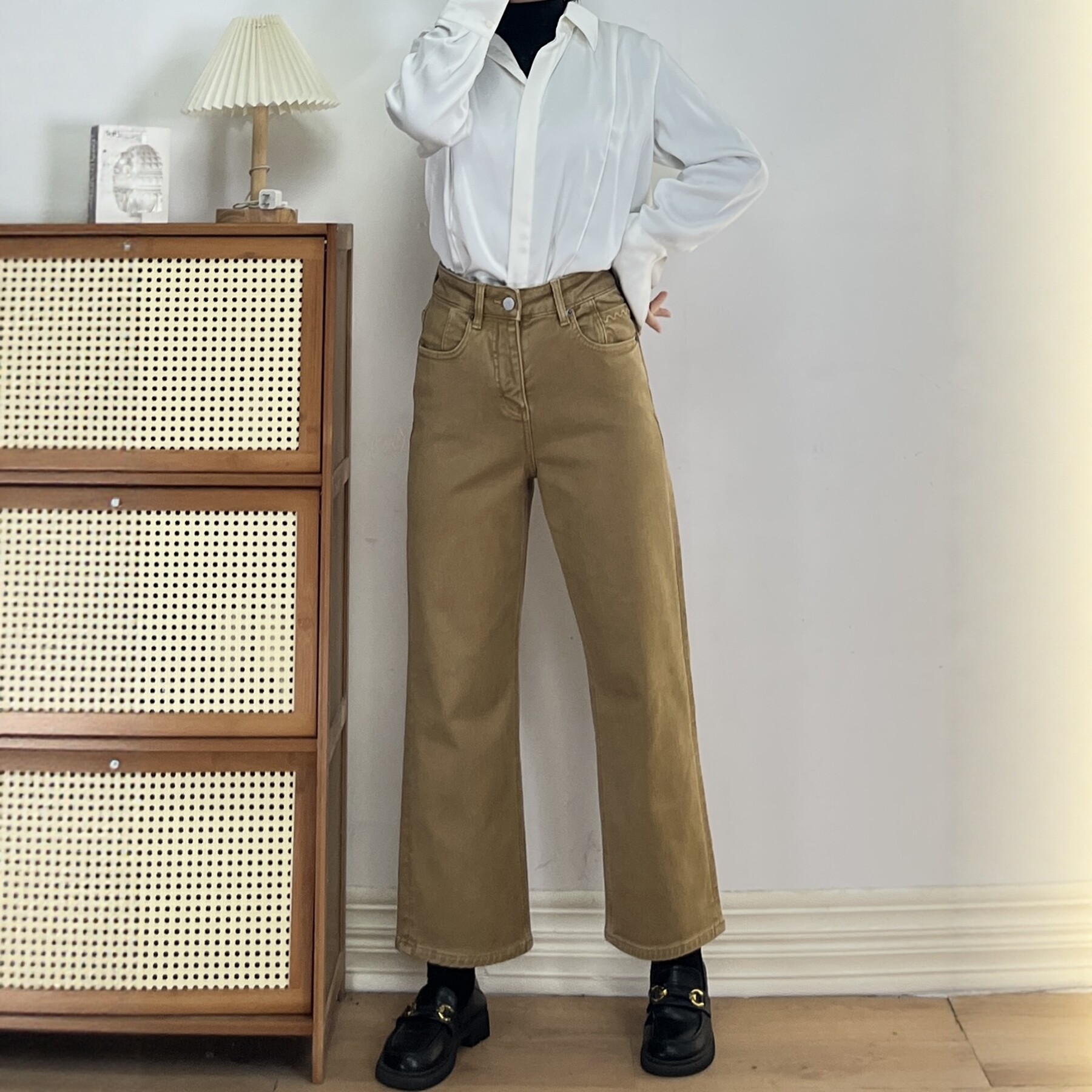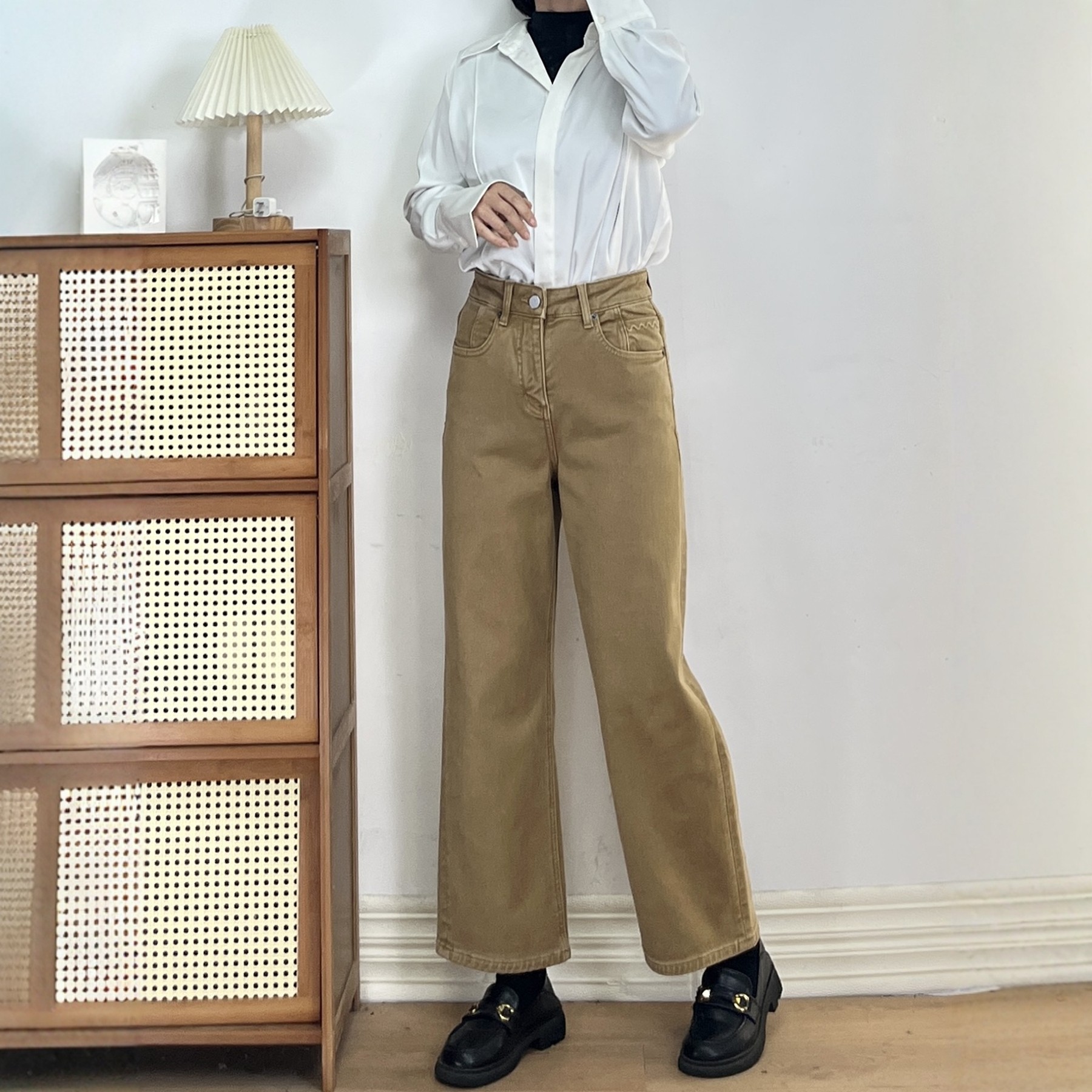 王家有鱼秋冬新款加绒阔腿裤2025百搭修身显瘦宽松直筒牛仔裤子女