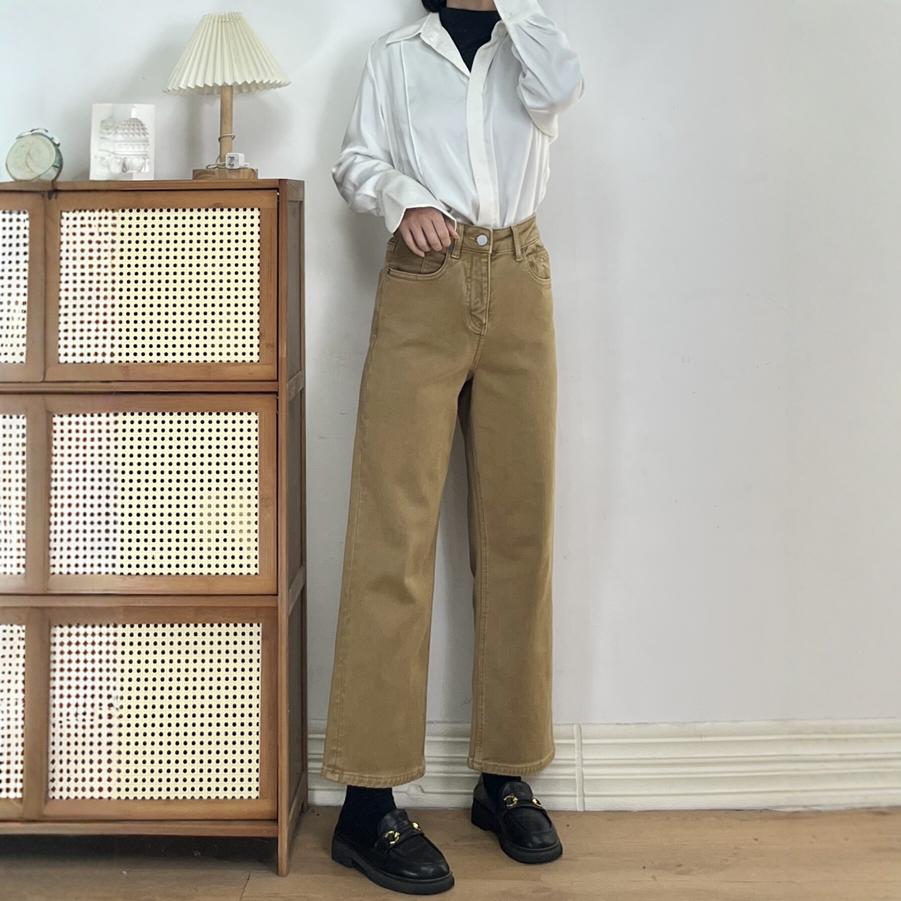 twosweet【超级裤神】四面弹重塑大长腿高腰直筒微喇叭原色牛仔裤