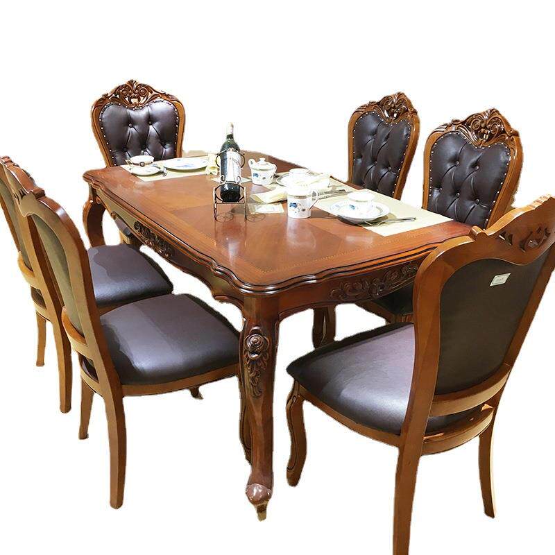 欧式实木餐桌1.3米餐桌1.5米餐台吃饭桌酒店餐桌椅组合一桌六椅