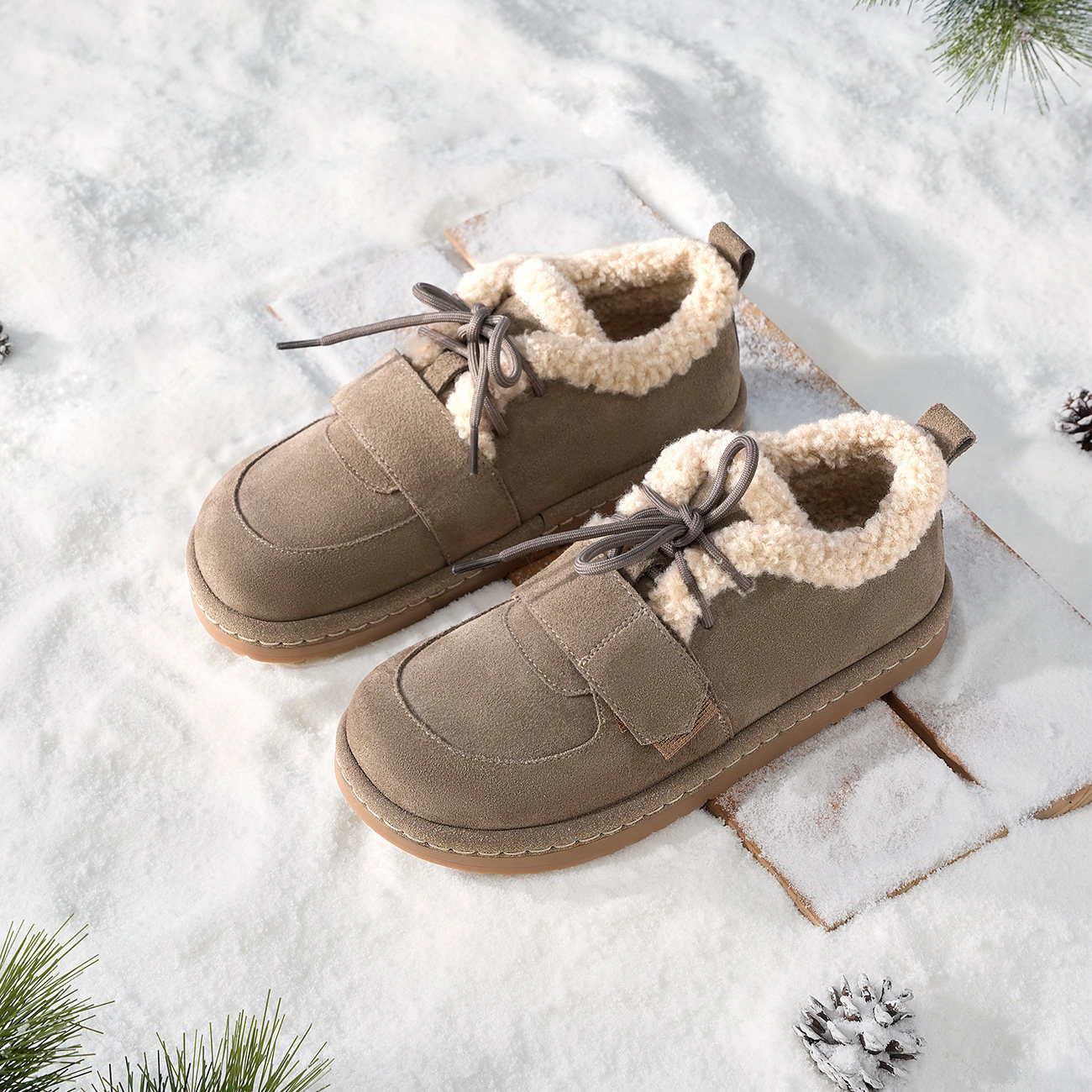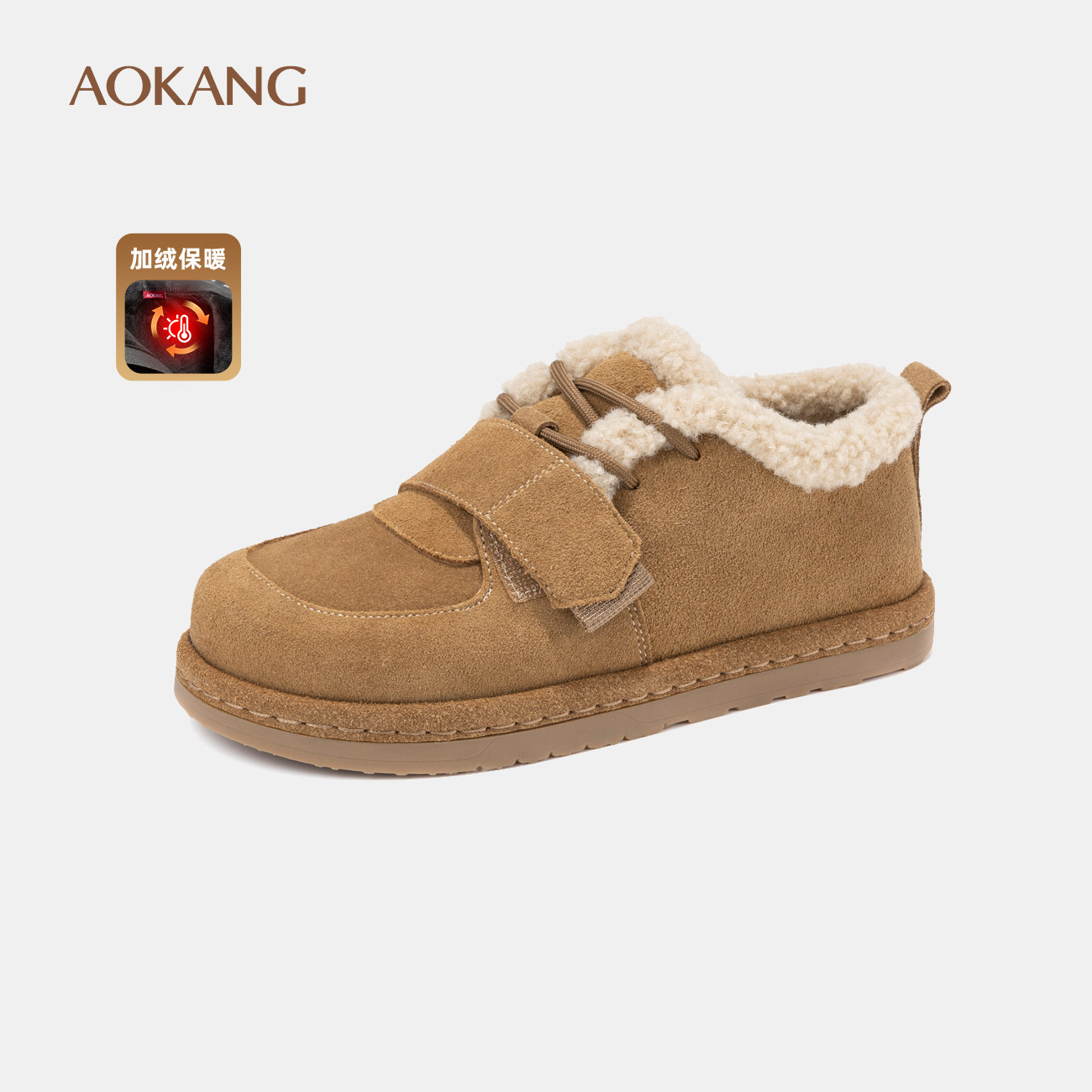 奥康女鞋冬季真皮时尚百搭保暖雪地靴系带舒适防滑毛毛鞋