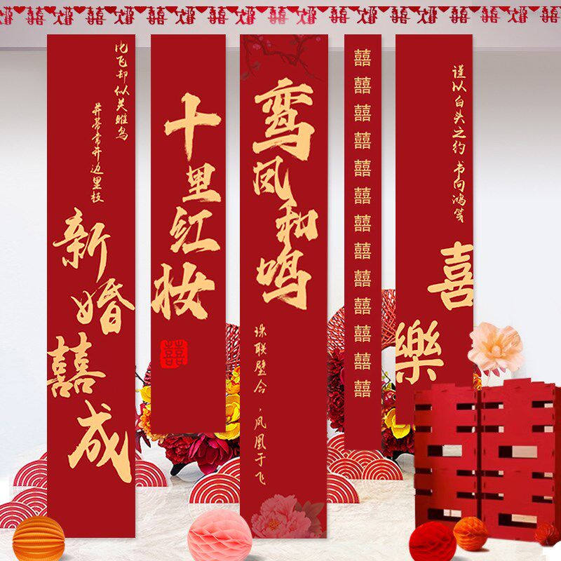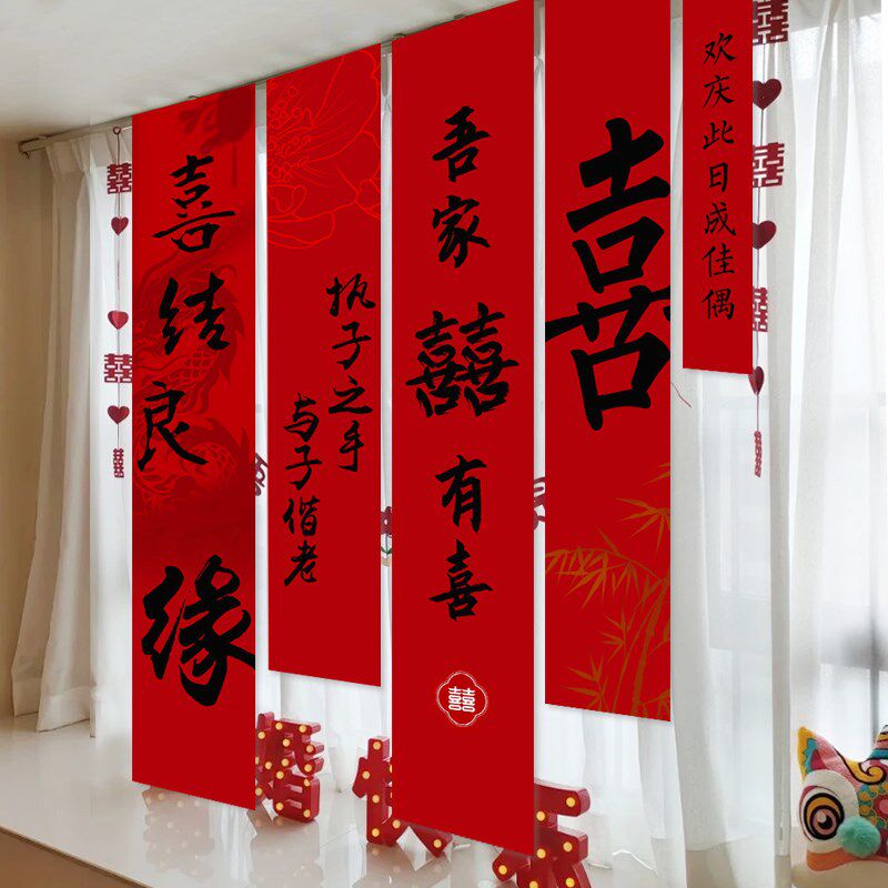 网红婚礼拍照区装饰道具婚房布置结E婚横幅挂旗挂布条横幅婚庆用