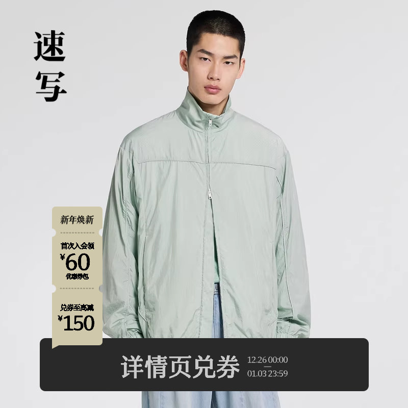 速写男装秋季新款夹克休闲拉链运动潮时尚设计立领外套