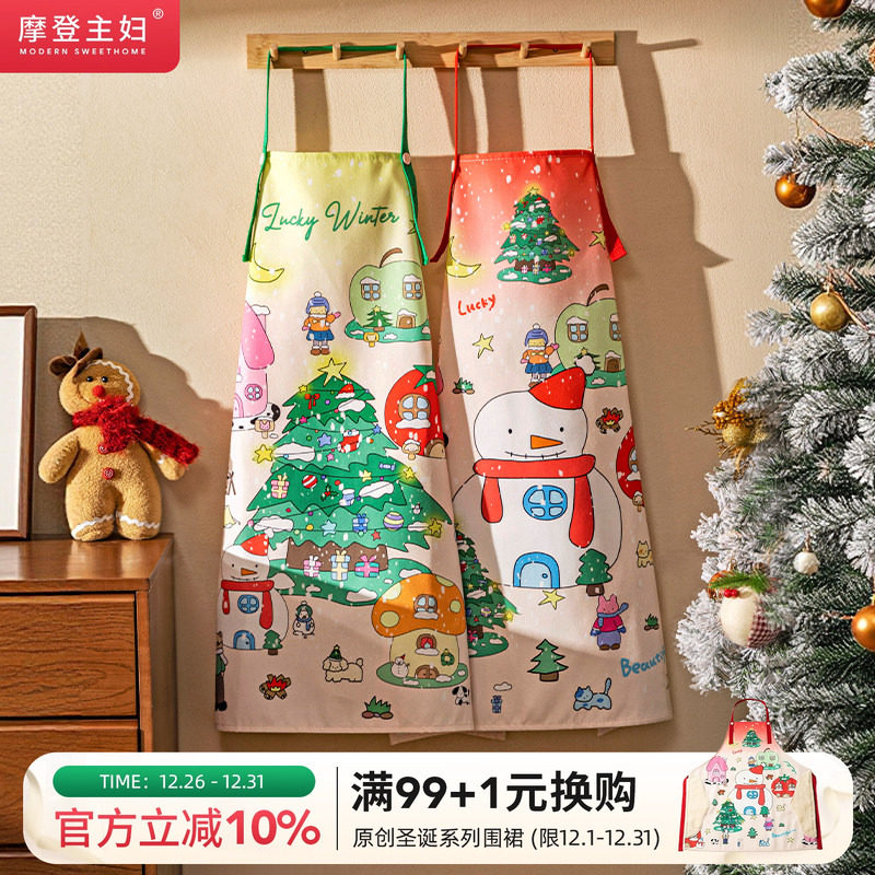 摩登主妇圣诞围裙厨房家用2025新款防水防油餐饮高级感年轻款罩衣