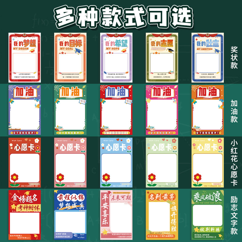 中高考励志文字目标墙高颜值装饰墙贴鼓励学生diy手写许愿祈愿挑战梦想大学可悬挂班级文化布置学习加油卡片