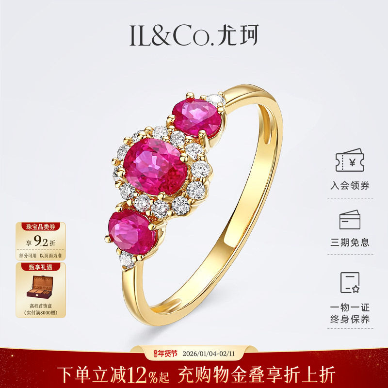 ILCO尤珂「少女蔷薇」18K金红宝石戒指轻奢珠宝镶嵌天然钻石女戒