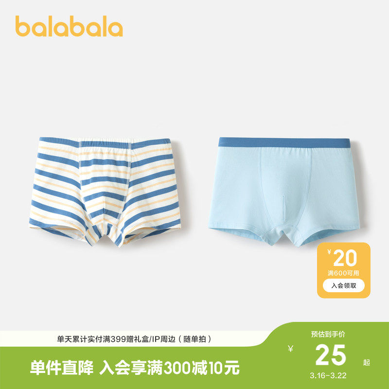 巴拉巴拉男童内裤平角棉儿童四角短裤大童抗菌两条装舒适柔软萌趣
