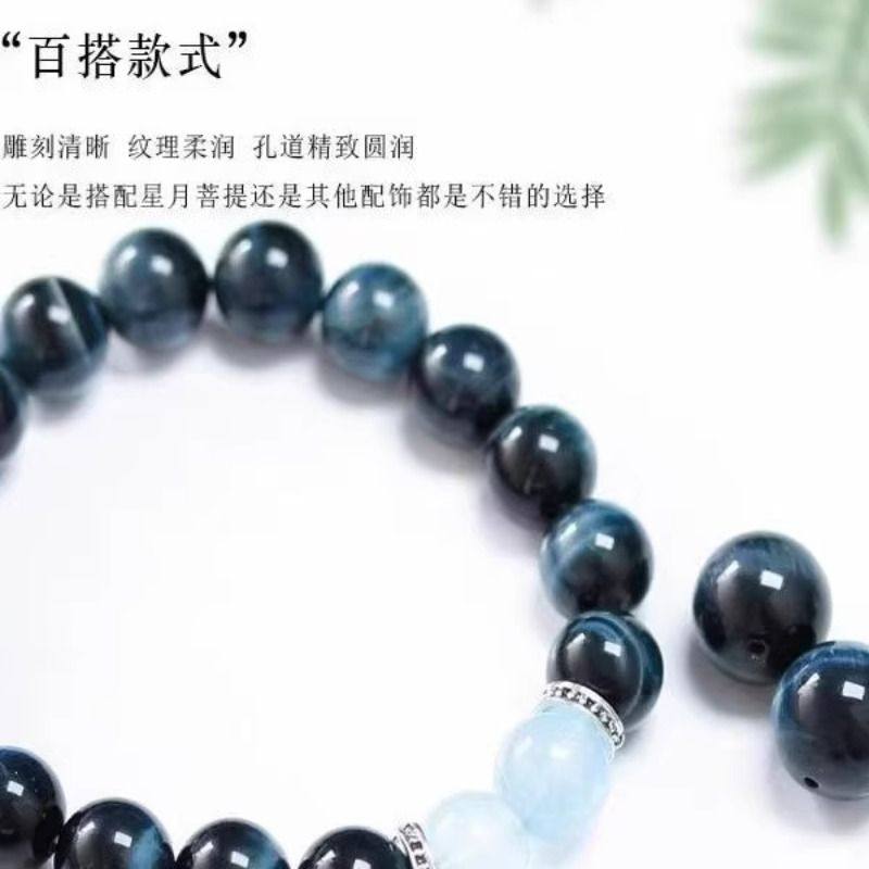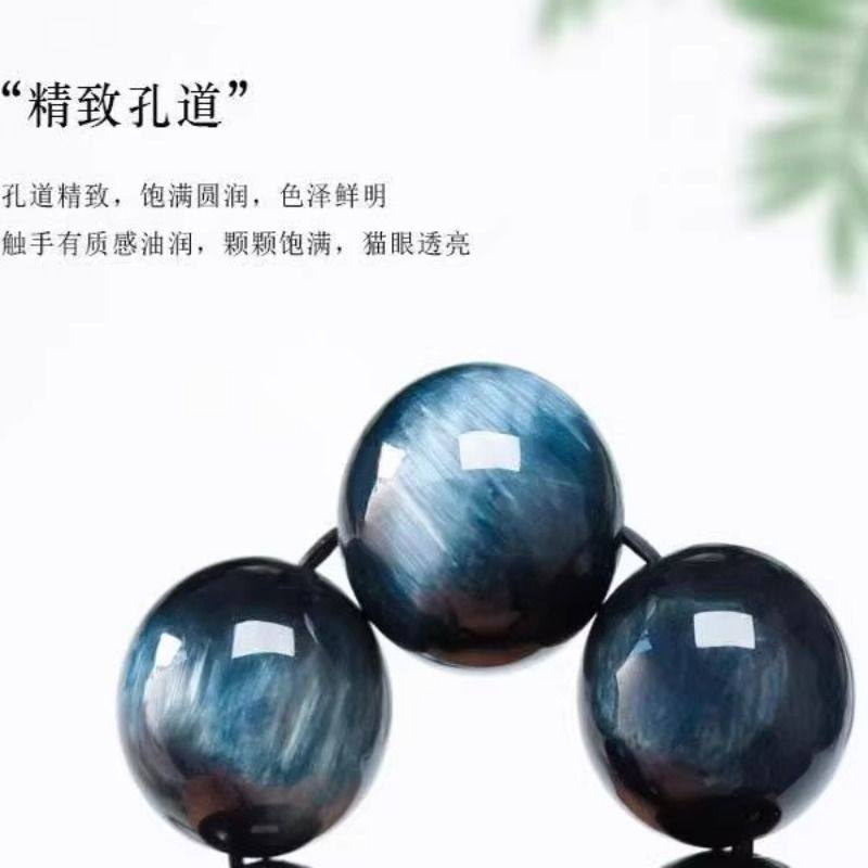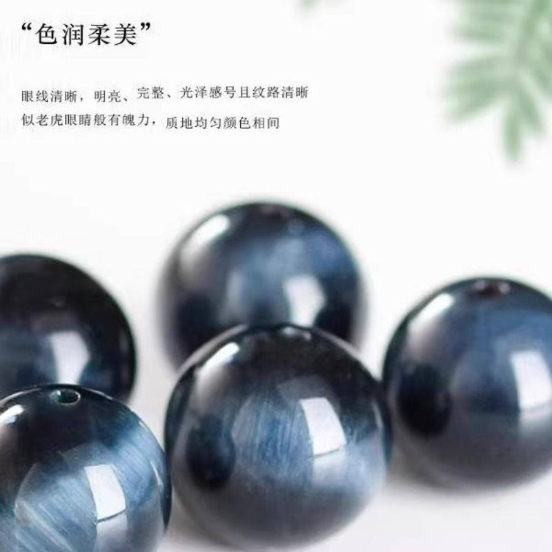 蓝虎眼石散珠子猫眼石水晶单颗多宝手串diy串珠饰品配件圆珠