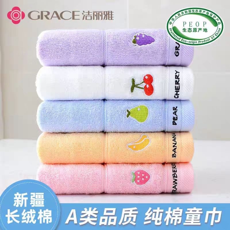 洁丽雅洗脸刺绣儿童毛巾纯棉小毛巾全棉水果家用柔软吸水女士面巾