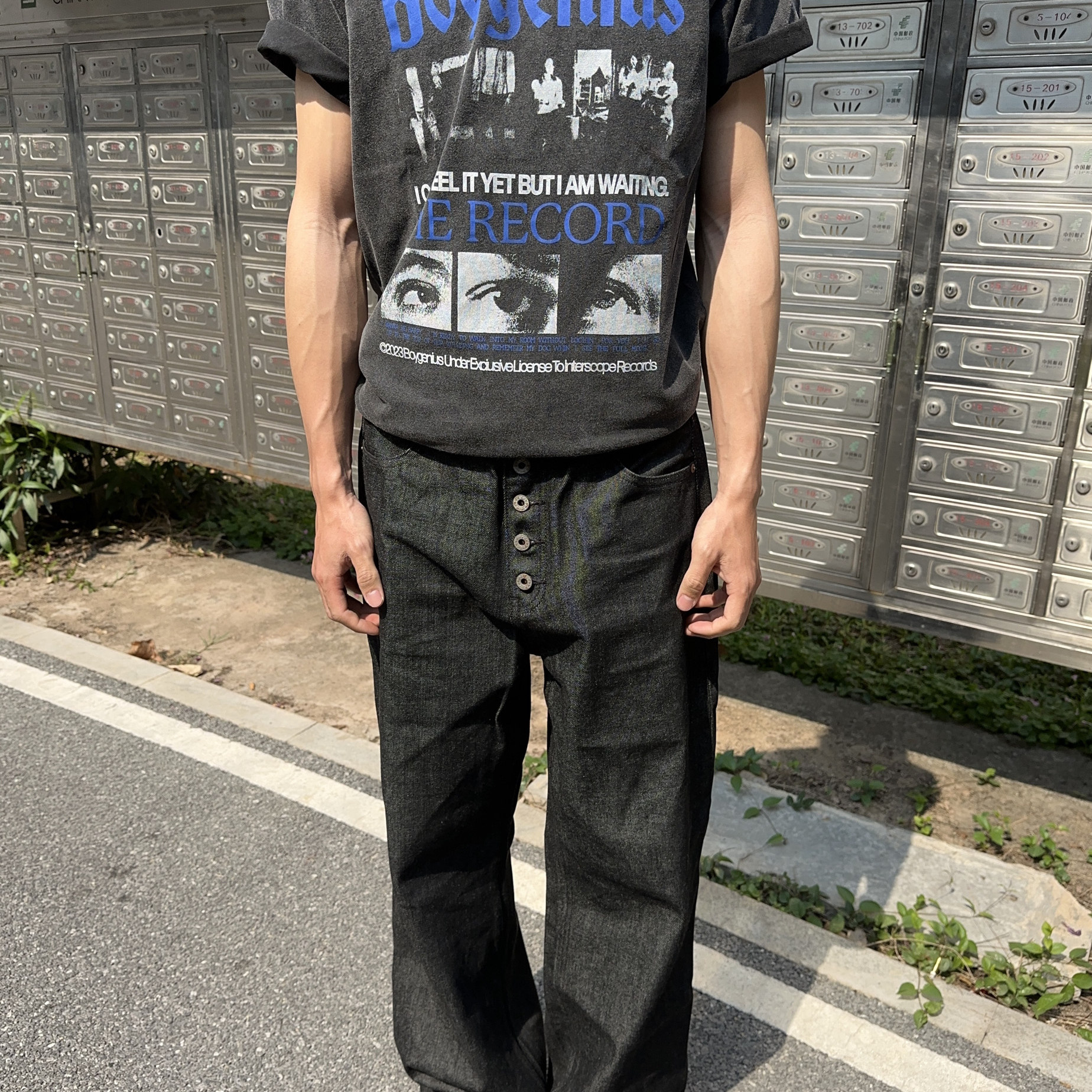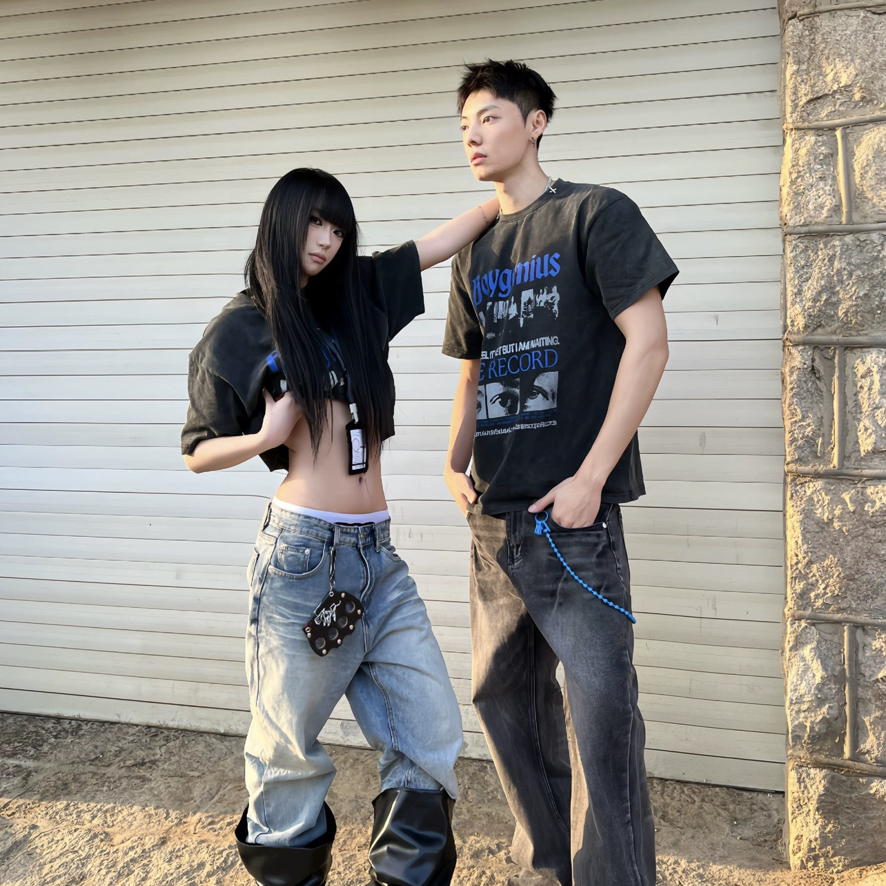 Anywayy人像标语做旧炒色黑色短袖 230g纯棉面料印花Vintage