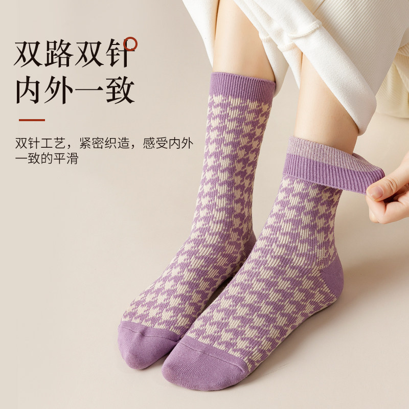 袜子女款秋冬加厚纯棉纱线中筒袜防臭日系无骨月子袜双针女士棉袜