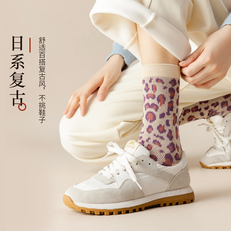 耐尔绵羊毛袜子女秋冬长袜加厚保暖复古百搭中筒袜ins潮堆堆袜