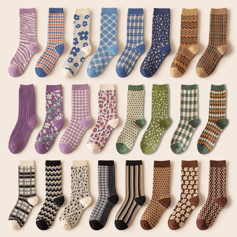 佐印3双男士袜子冬季款吸汗中筒袜文艺复古民族风防臭日系长筒袜